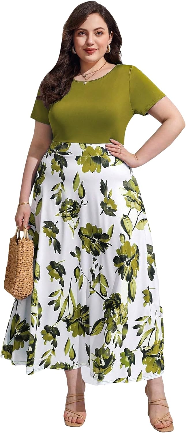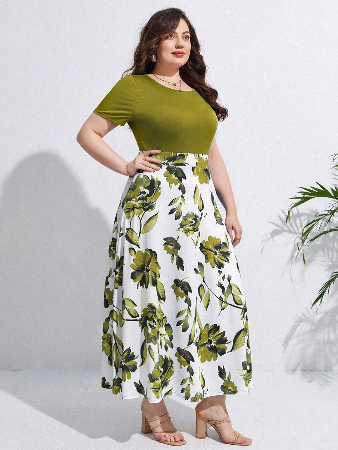 GORGLITTER Women's Plus Size Floral Print Short Sleeve A Line Dress Bo – BUYO