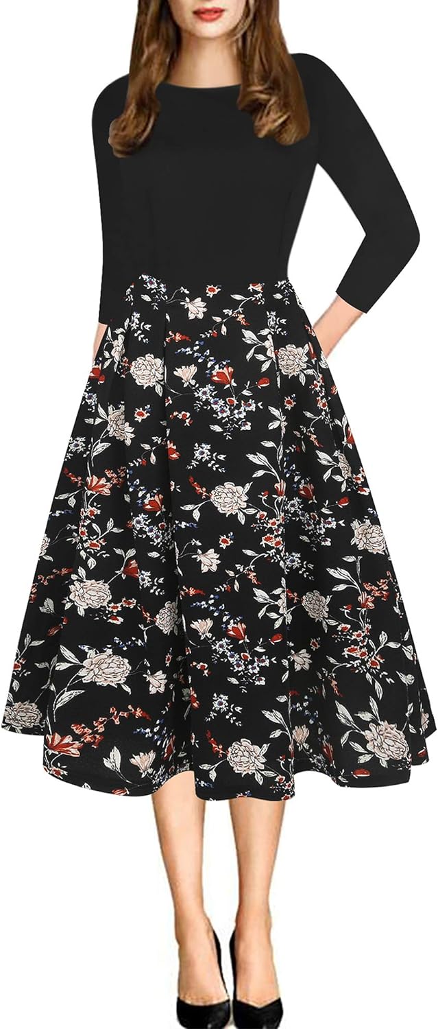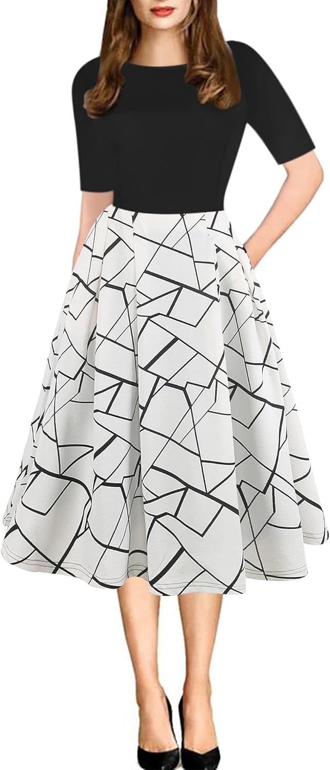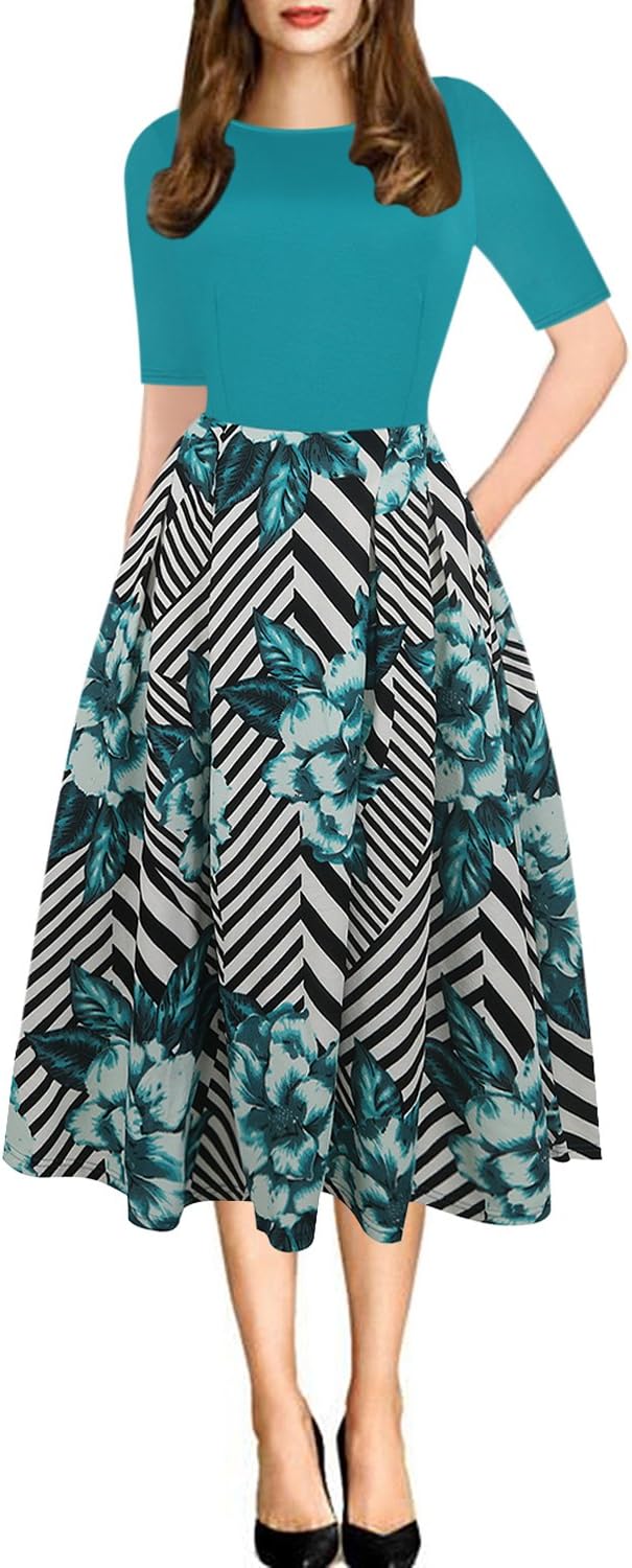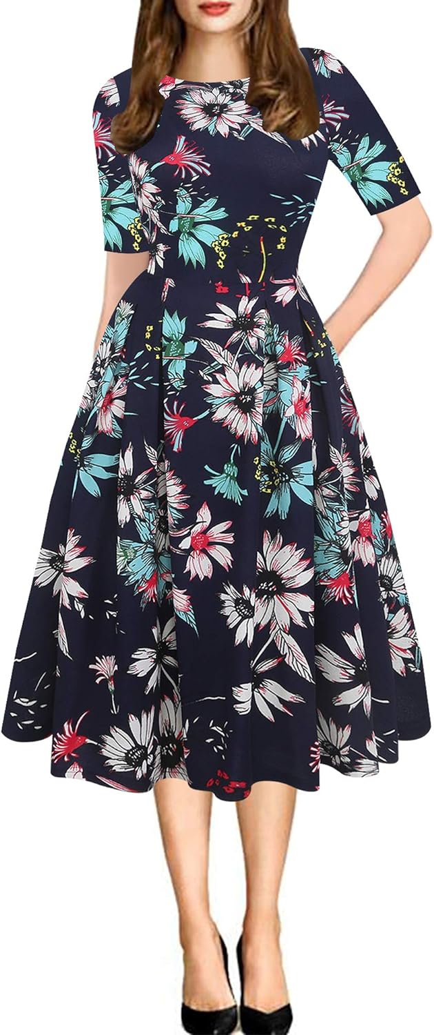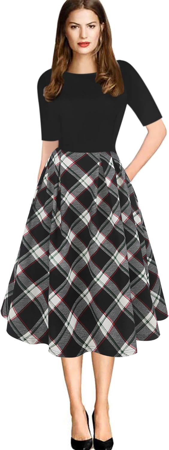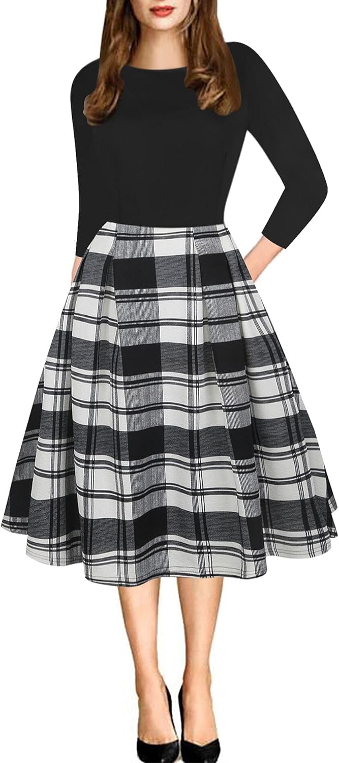 - Oxiuly Women's Vintage 1950's Classic Plaid Stripe Floral Flare Polka Dot Patchwork with Pockets Hepburn Style Cocktail Party Swing Dress Long Sleeve Short Sleeve Half Sleeve Scoop Neck Round Neck Stretchy Cotton Puffy Casual Work Businees Church Tea Midi Knee-length A-lien Sunner Fall Autumn Elegant Chic Casual Dress Dresses