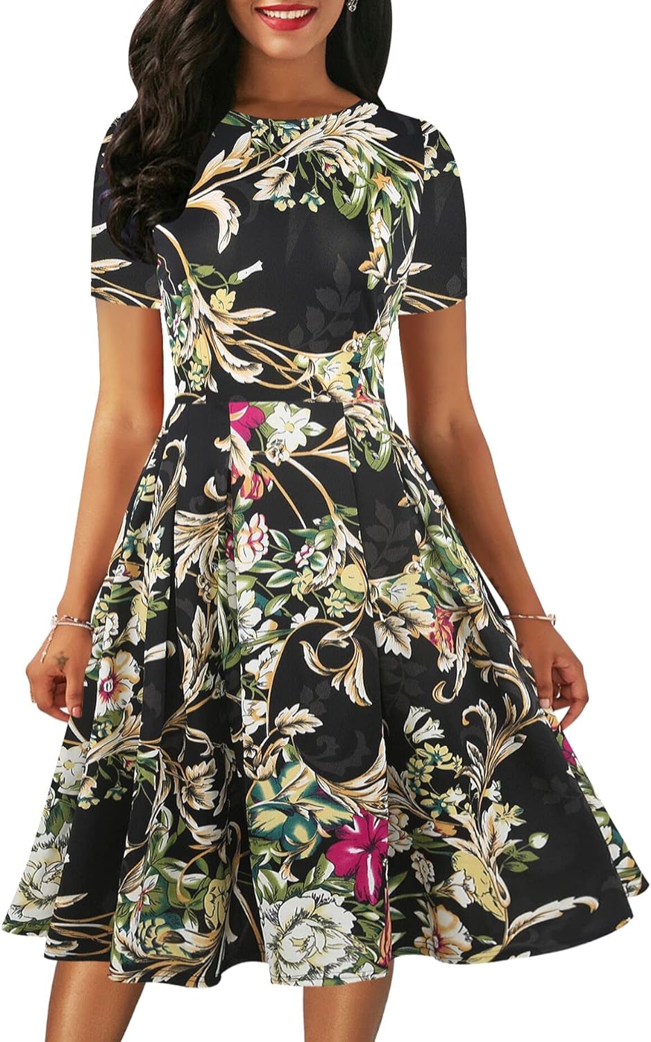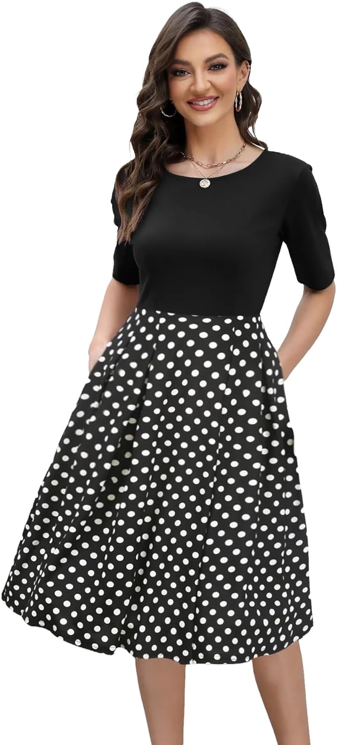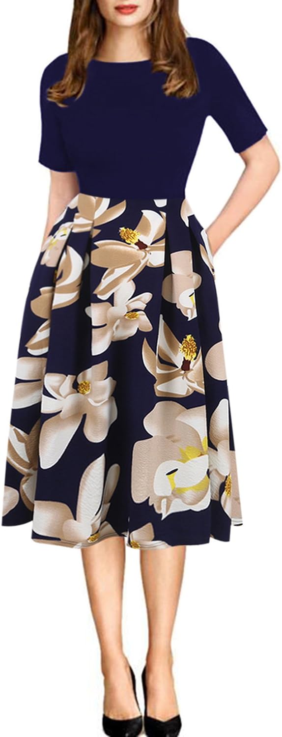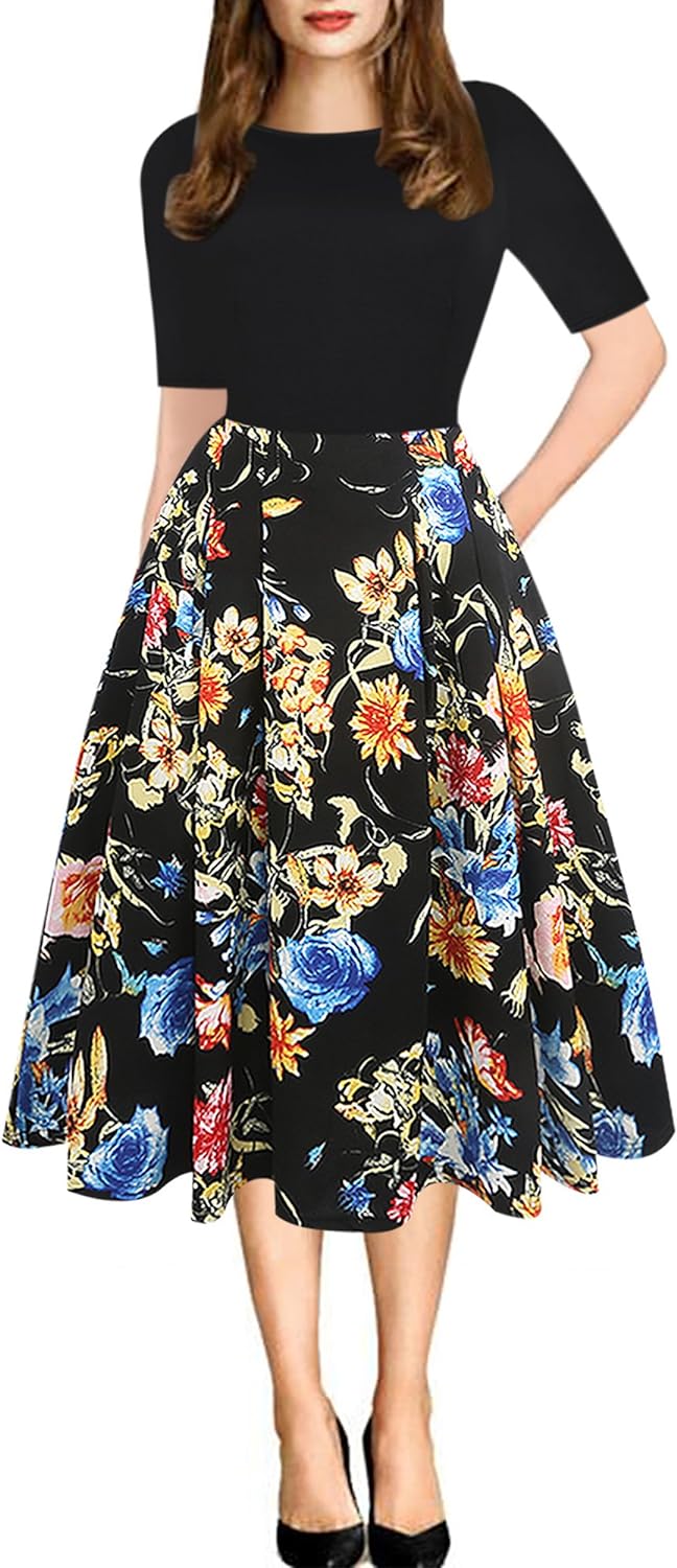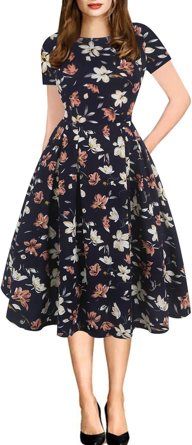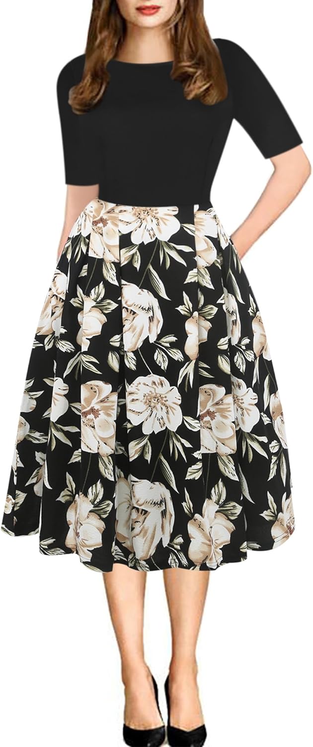 - Oxiuly Women's Vintage 1950's Classic Plaid Stripe Floral Flare Polka Dot Patchwork with Pockets Hepburn Style Cocktail Party Swing Dress Long Sleeve Short Sleeve Half Sleeve Scoop Neck Round Neck Stretchy Cotton Puffy Casual Work Businees Church Tea Midi Knee-length A-lien Sunner Fall Autumn Elegant Chic Casual Dress Dresses