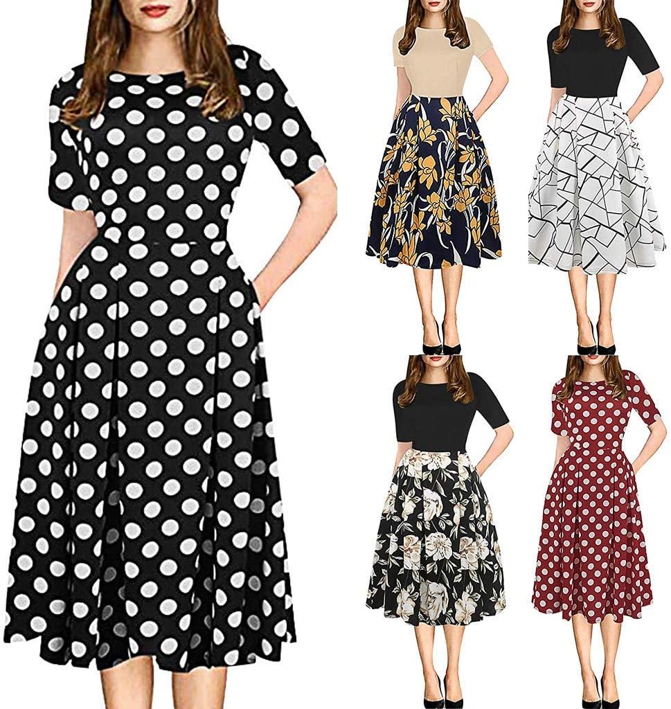 Please check the Size Chart before order. If you are not sure the size, please send message to us. Product information: Features: Vintage, Patchwork, Pockets, Puffy, Swing, Print, Casual Party Dress, Casual Dress, Casual Wear, Stylish and fashion design, O-Neck, Party Vintage Dress, Summer casual dress. Material: Polyester. Made from high quality fabric, lightweight soft and comfortable. Style: Women's Vintage Patchwork Pockets Puffy Swing Casual Party Dress O-Neck, Ball Gown, Fit and Flare. This dress have pockets in side. The dress is elegant it self. It's simple but elegant and classy. The dress is really nice and feminine. If you are a little conservative type of person so dress like this always works for you. The length of skirt is enough, not too shorts or too long. Its very well made and the quality is high. You can definitely wear this in special occasions. PLEASE NOTE: Hand or gentle machine wash in cold water / Do not bleach / Line dry. Our clothes all are designed for Asian figure, which means would be smaller than normal European sizes. Please refer to our own size chart instead of Amazon size chart, and you can find it in our pictures or from the description. What you get: 1PC Women DressSize: S US: 4 UK: 8 EU: 34 Bust: 89cm/35.04'' Sleeve: 44cm/17.32'' Waist: 69cm/27.17'' Length: 102cm/40.16'size: M US: 6 UK: 10 EU: 36 Bust: 94cm/37.01'' Sleeve: 45cm/17.72'' Waist: 74cm/29.13'' Length: 103cm/40.55'size: L US: 8 UK: 12 EU: 38 Bust: 101cm/39.76'' Sleeve: 46cm/18.11'' Waist: 81cm/31.89'' Length: 104cm/40.94'size: XL US: 10 UK: 14 EU: 40 Bust: 108cm/42.52'' Sleeve: 47cm/18.50'' Waist: 88cm/34.65'' Length: 105cm/41.34'size: XXL US: 12 UK: 16 EU: 42 Bust: 115cm/45.28'' Sleeve: 48cm/18.90'' Waist: 95cm/37.40'' Length: 106cm/41.73''.