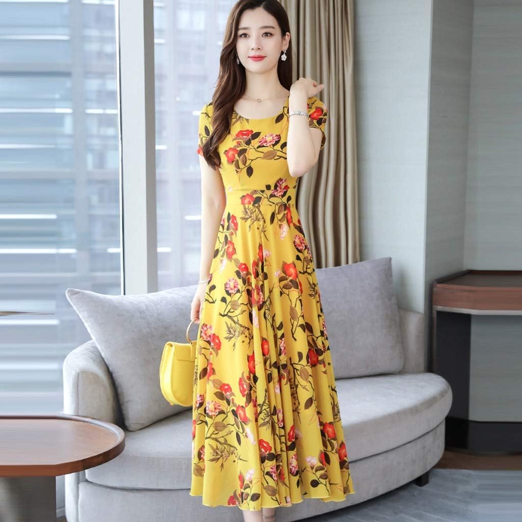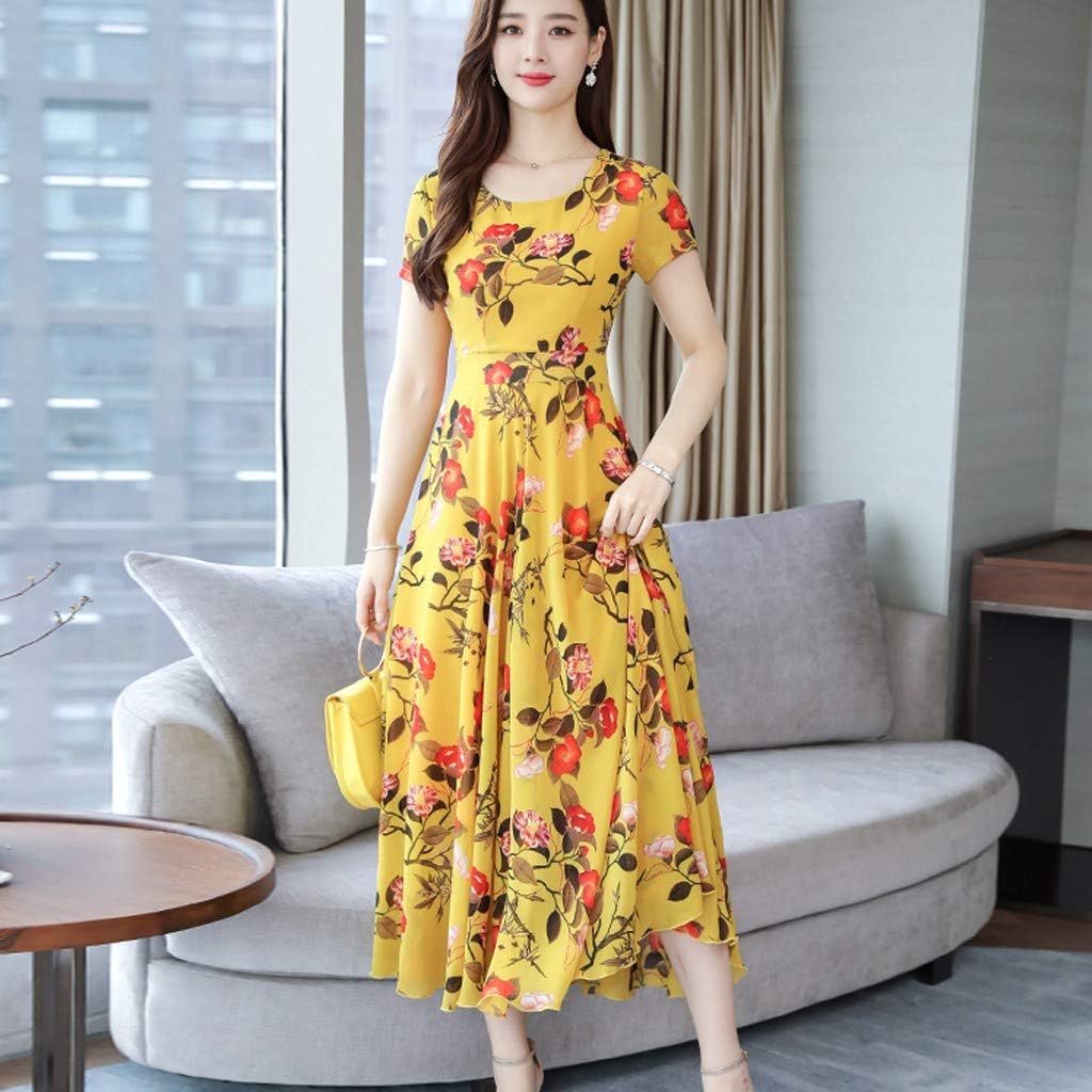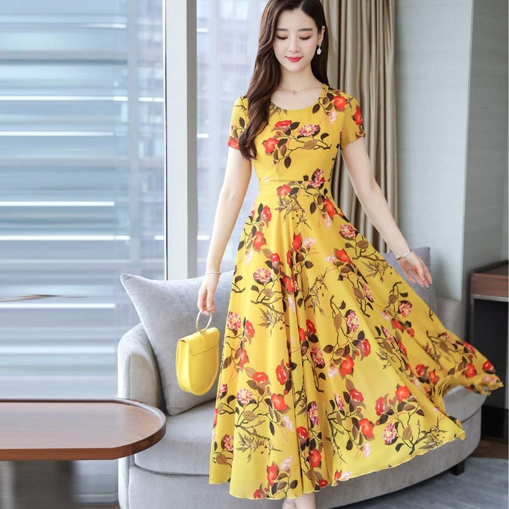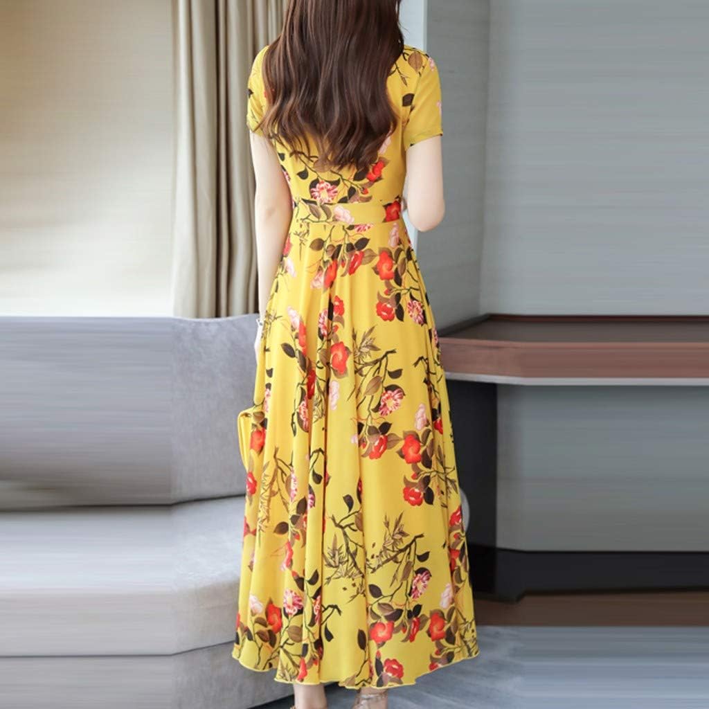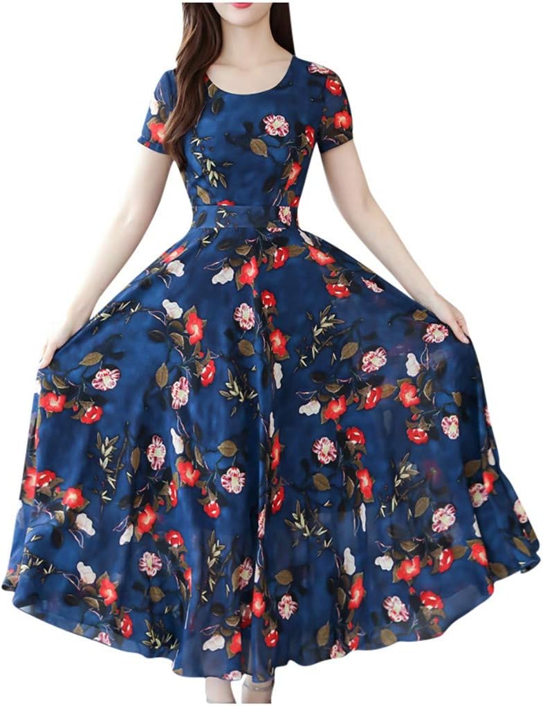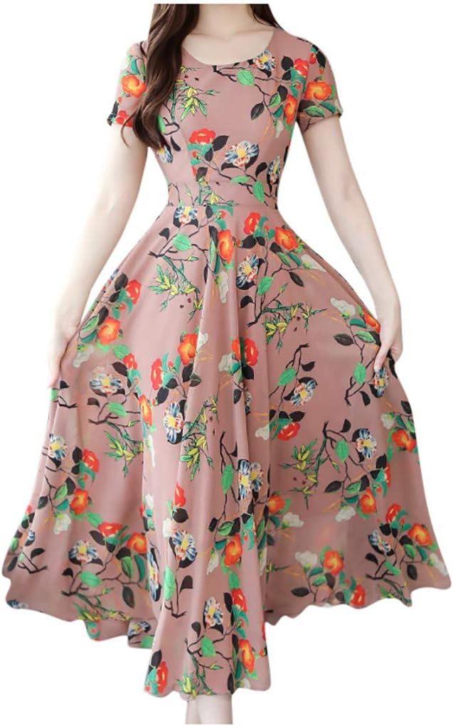 WDSWZ Women Dress Fashion Summer Grace Mid-Calf Short Sleeve Beach Floral Printing Dresses