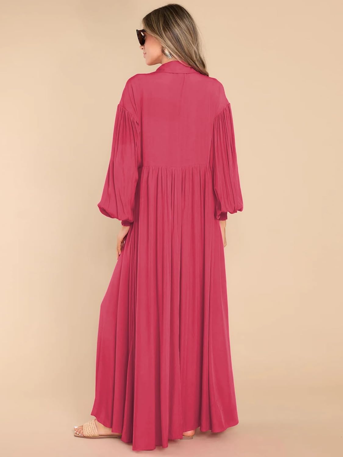 Women's Maxi Shirt Dress Button Down Long Sleeve Casual Flowy A-line L – BUYO