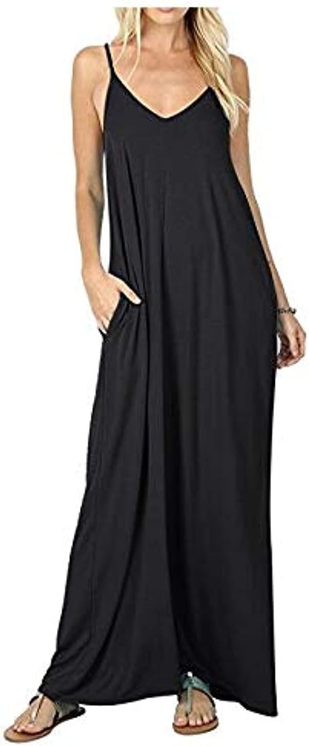 Women's Summer Casual Plain Flowy Pockets Loose Beach Cami Maxi Dress – BUYO