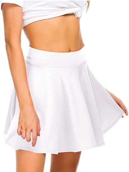 Jaffiust Women's Basic Versatile Stretch Flare Casual Mini Skate Skirt(White/M)
