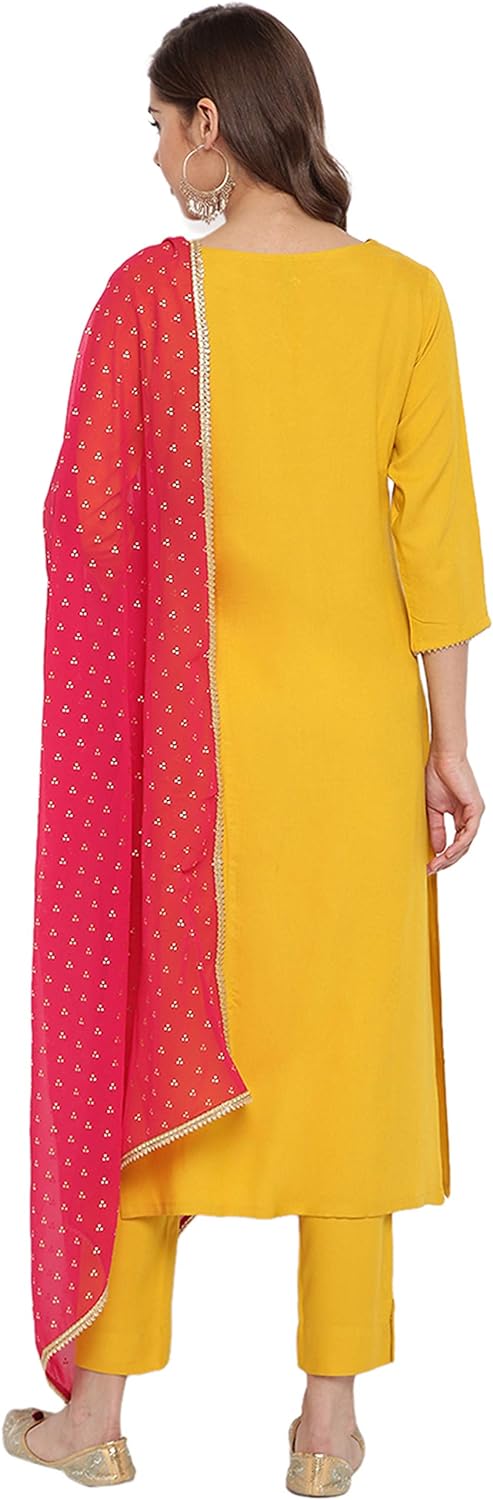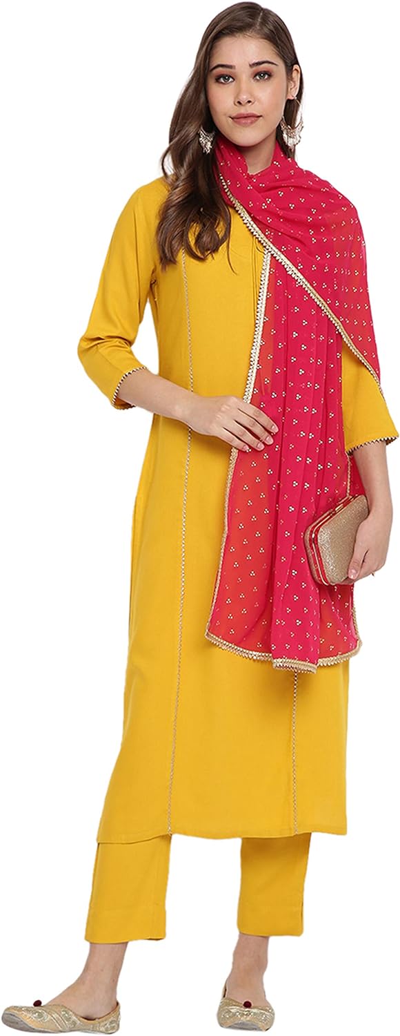 - Material: Kurta-Rayon; Bottom-Rayon; Dupatta-Georgette