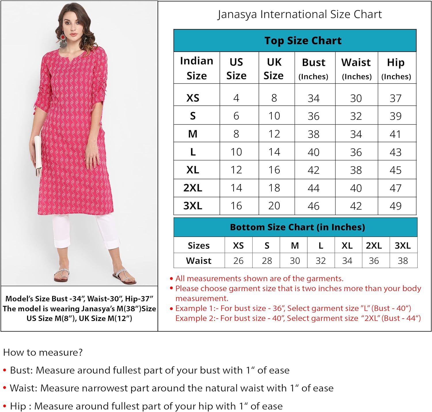 - Care Instructions: Handwash., Size Declaration: Please choose garment size that is two inches more than your body measurement.e.g:-For Bust size -36(S),Select garment size-38''(M)., Colour Declaration: There might be slight variation in the actual color of the product due to different screen resolutions., Remark: The Model ( height 5'8") is wearing a size "S", Accessories is just for presentation, it is not included with this product.