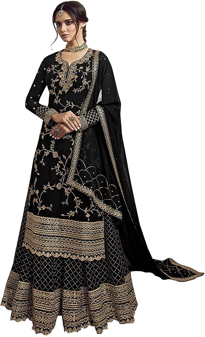 • Top : Semi Stitched , Bottom : Stitched; Work : Embroidered , Type : Party wear Kurta Palazzo Set; Color : Black