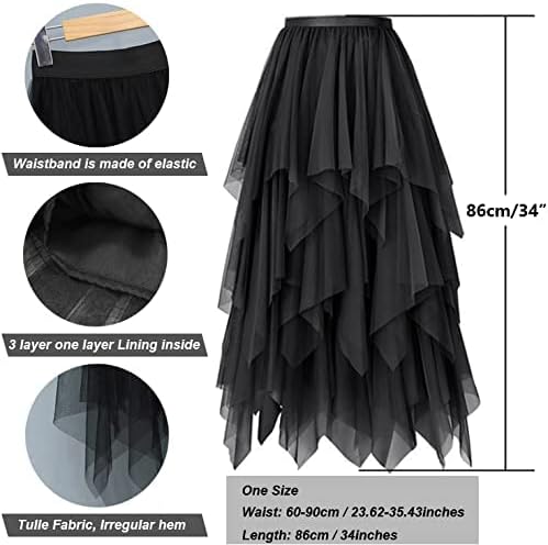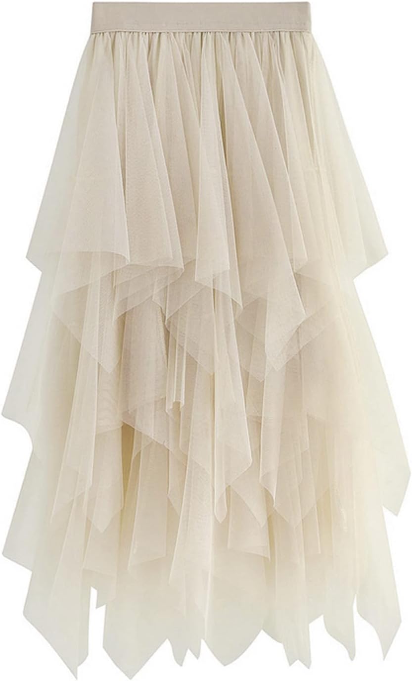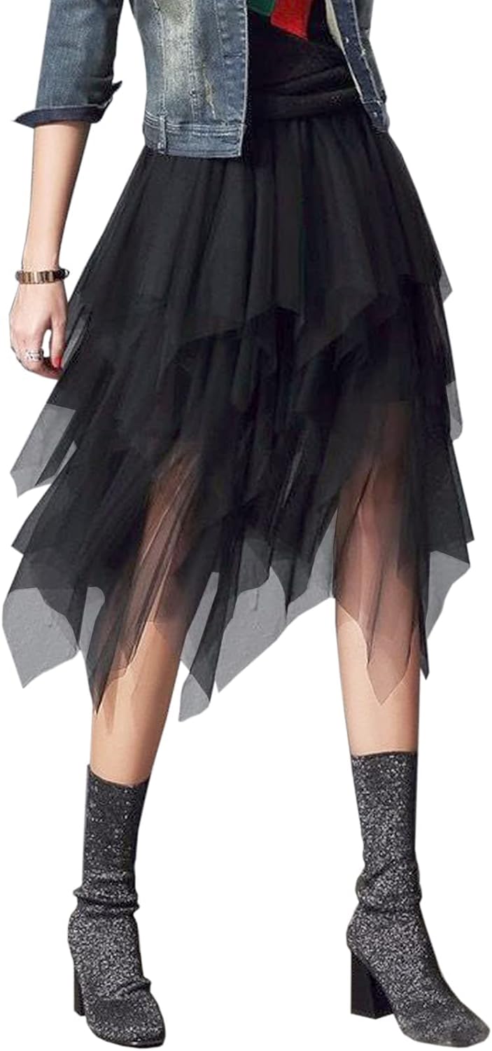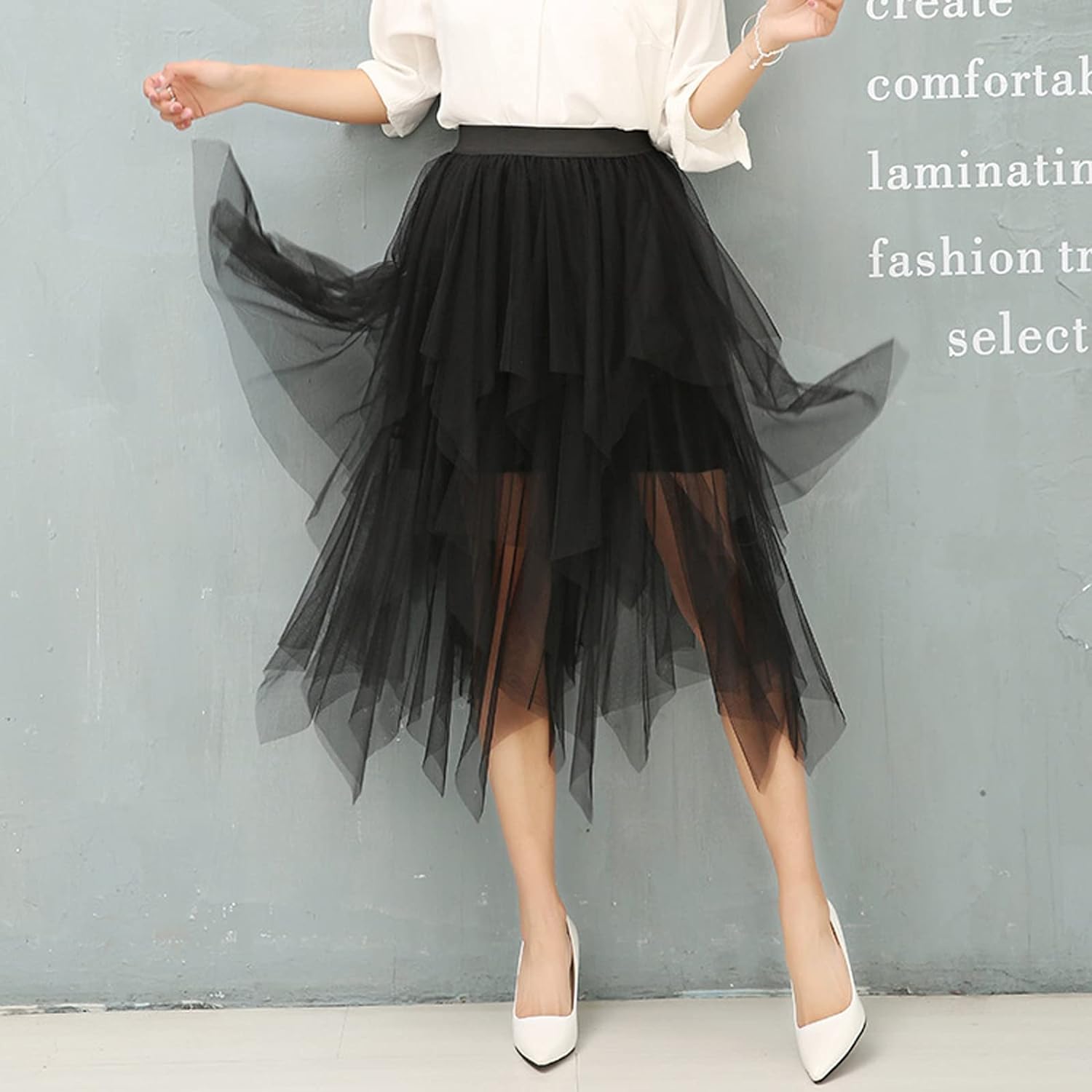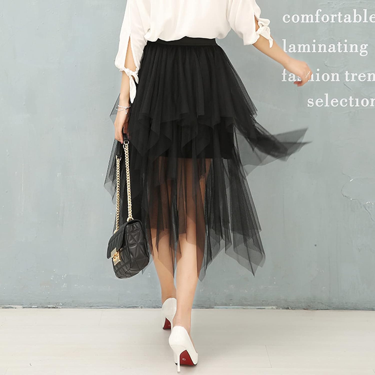 Tulle Skirts for Women 3 Layered High Low Asymmetrical Midi Length Elastic Waist Mesh Tutu Skirts