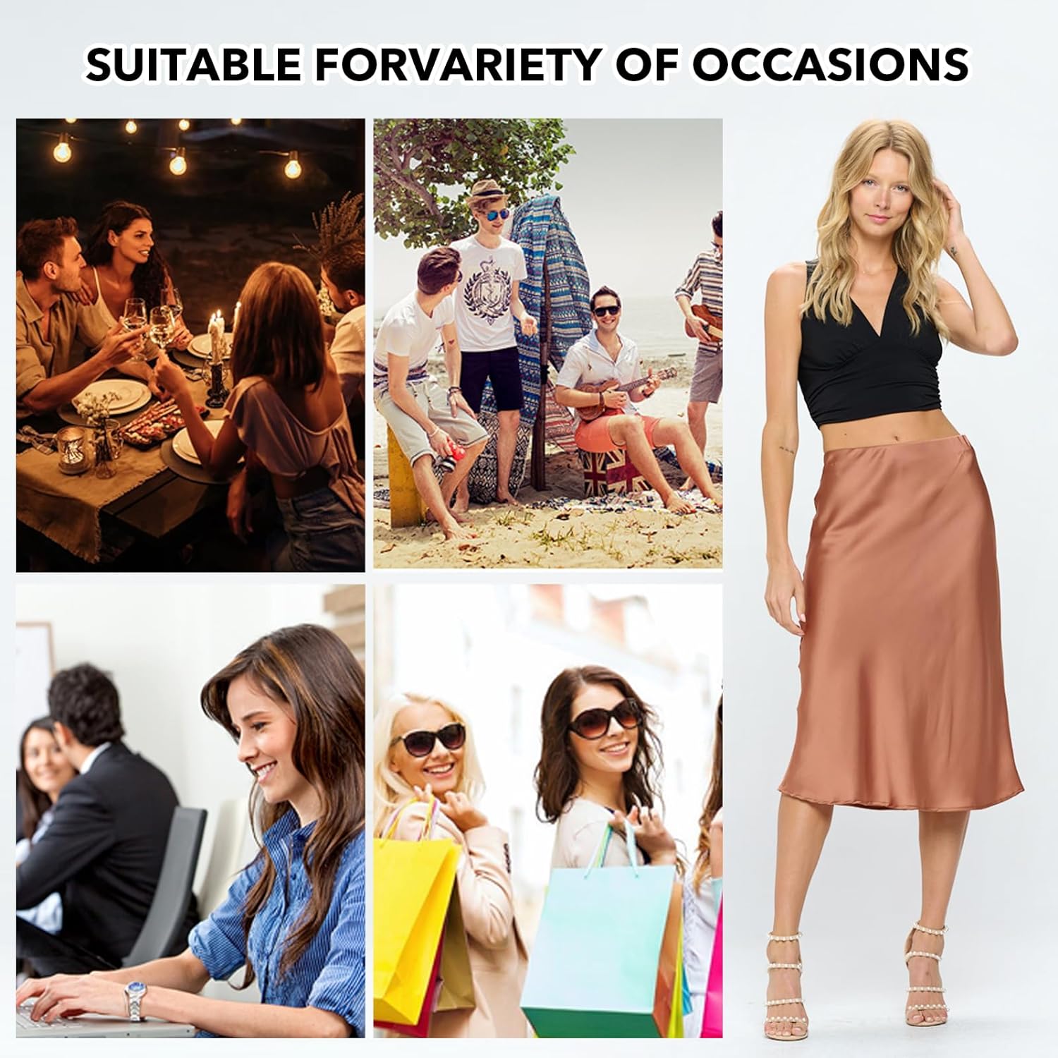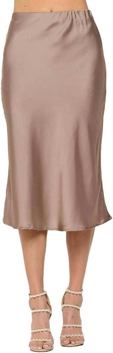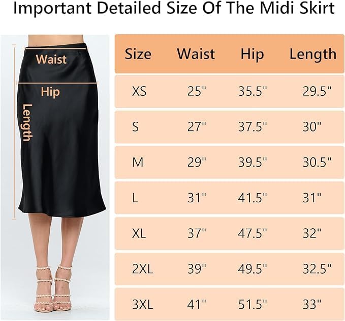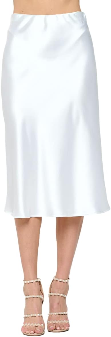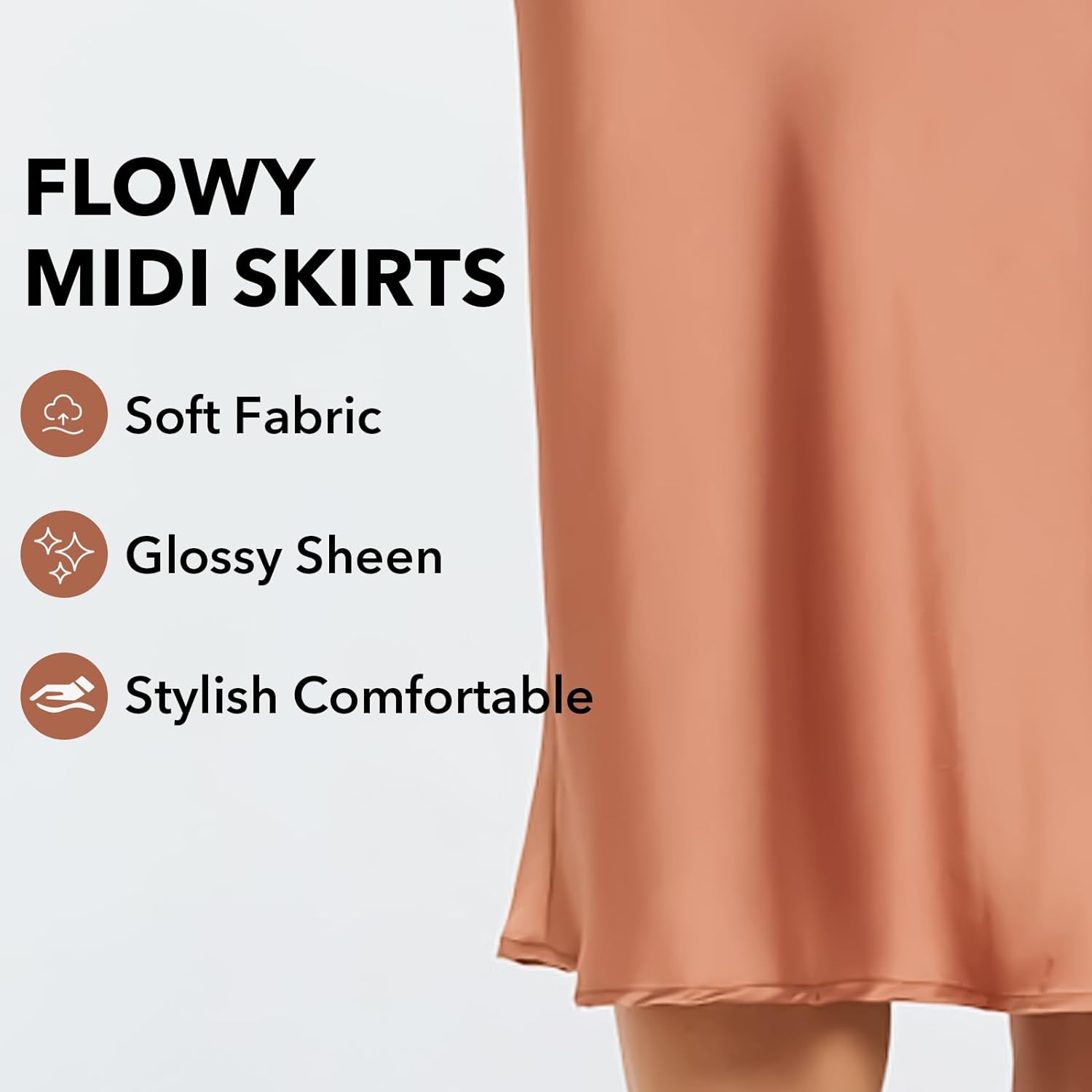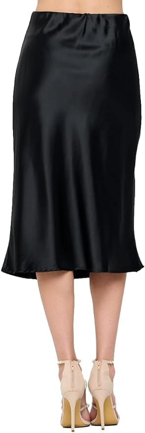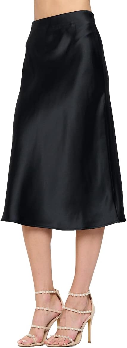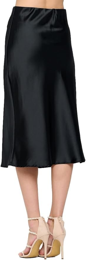 - FEATURES: Our stylish satin skirts features High wasted, Elastic Band, A-lined fit, below knee length, Flared, and lastly silky smooth.