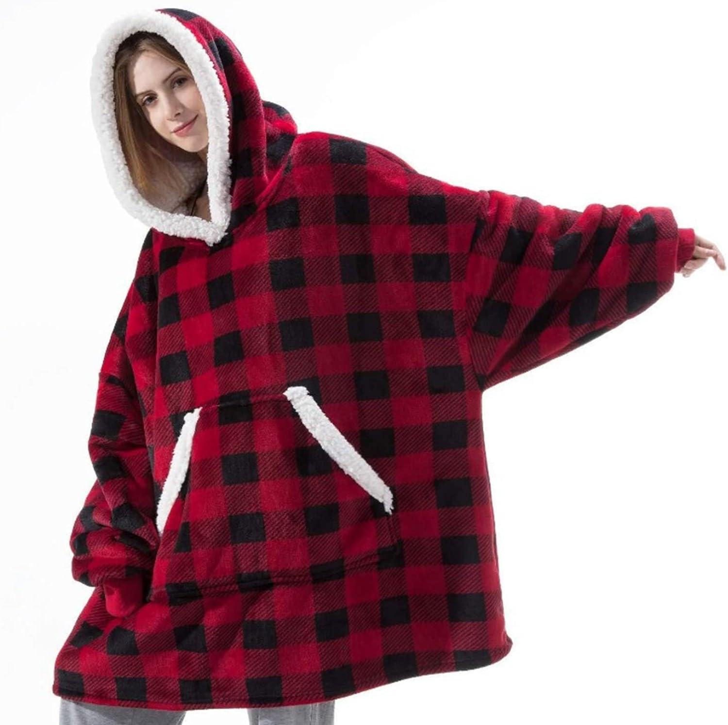 Hoodie Blanket Sweatshirt for Women and Men, Super Warm and Cozy Big Wearable Blanket Hoodie, Thick Flannel Blanket with Sleeves and Giant Pocket