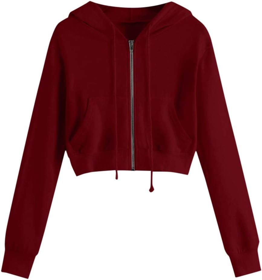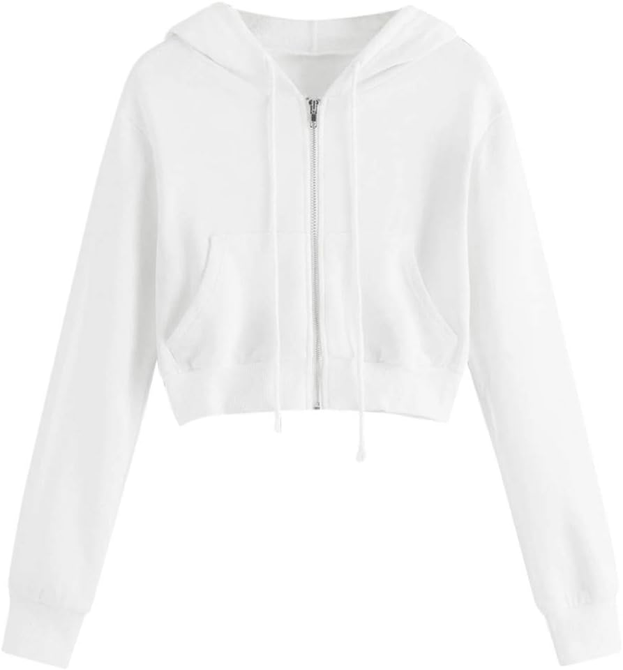 LOPELY Girls Childish Hoodie Hooded Top Crop Top Hoodie Full Zip Hip Hop Sports Hoodie Sweatshirt Stylish Jumpers Hoody Cute Tops For Women