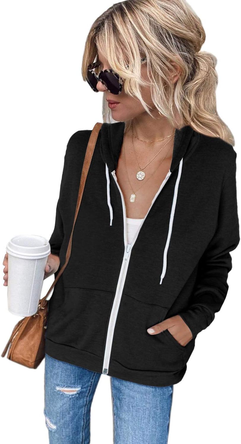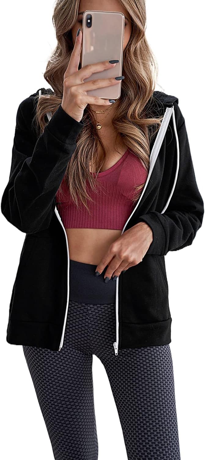 Women Full Zip Up Hoodies Long Sleeve Hooded Sweatshirts Comfy Loose Sweatshirt Solid Color Jacket with Pockets (Black, Large)