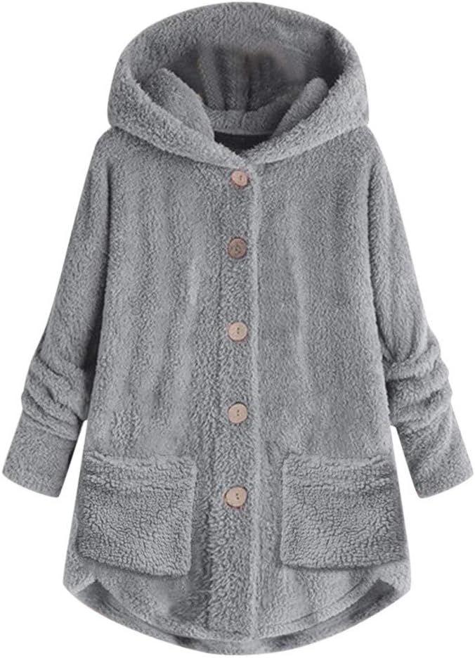 Women Hoodies Warmt Coat, Ladies Solid Long Sleeve Button Plus Size Plush Winter Jacket Outwear, Gray