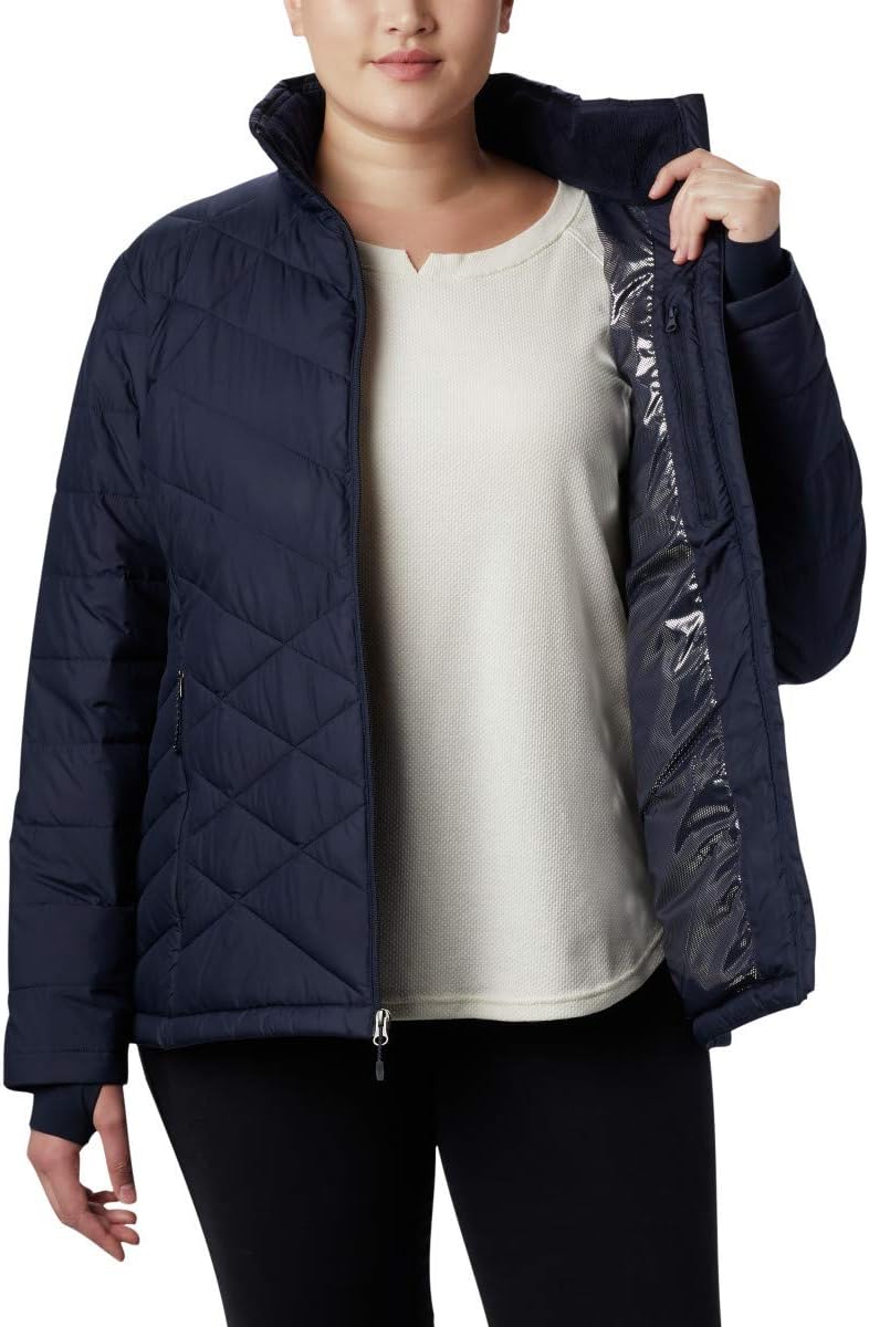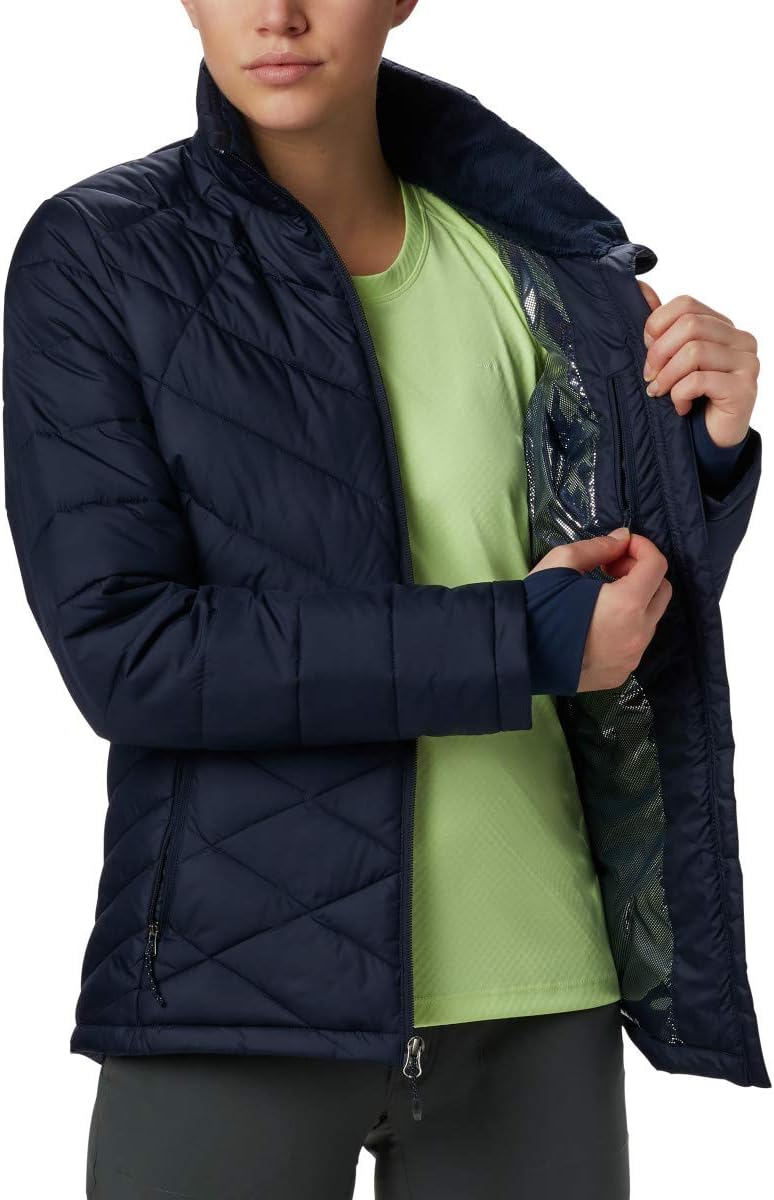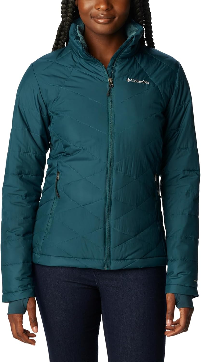 The Columbia Women's Heavenly Jacket combines stylish urban looks with technology to keep you warm and dry. A great fall and winter jacket, you'll love the feminine silhouette shaped in a modern cut. Its water resistant shell is lined with our signature Omni-HEAT reflective lining, along with a yummy plush fleece-lined collar that instills a sense of confidence when the weather turns super blustery and cold.