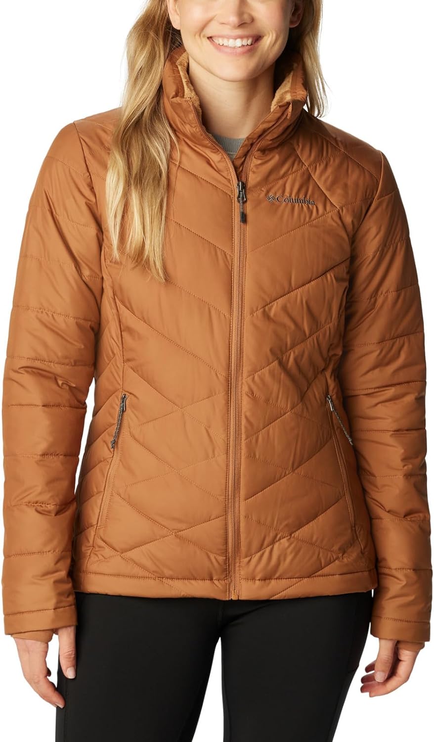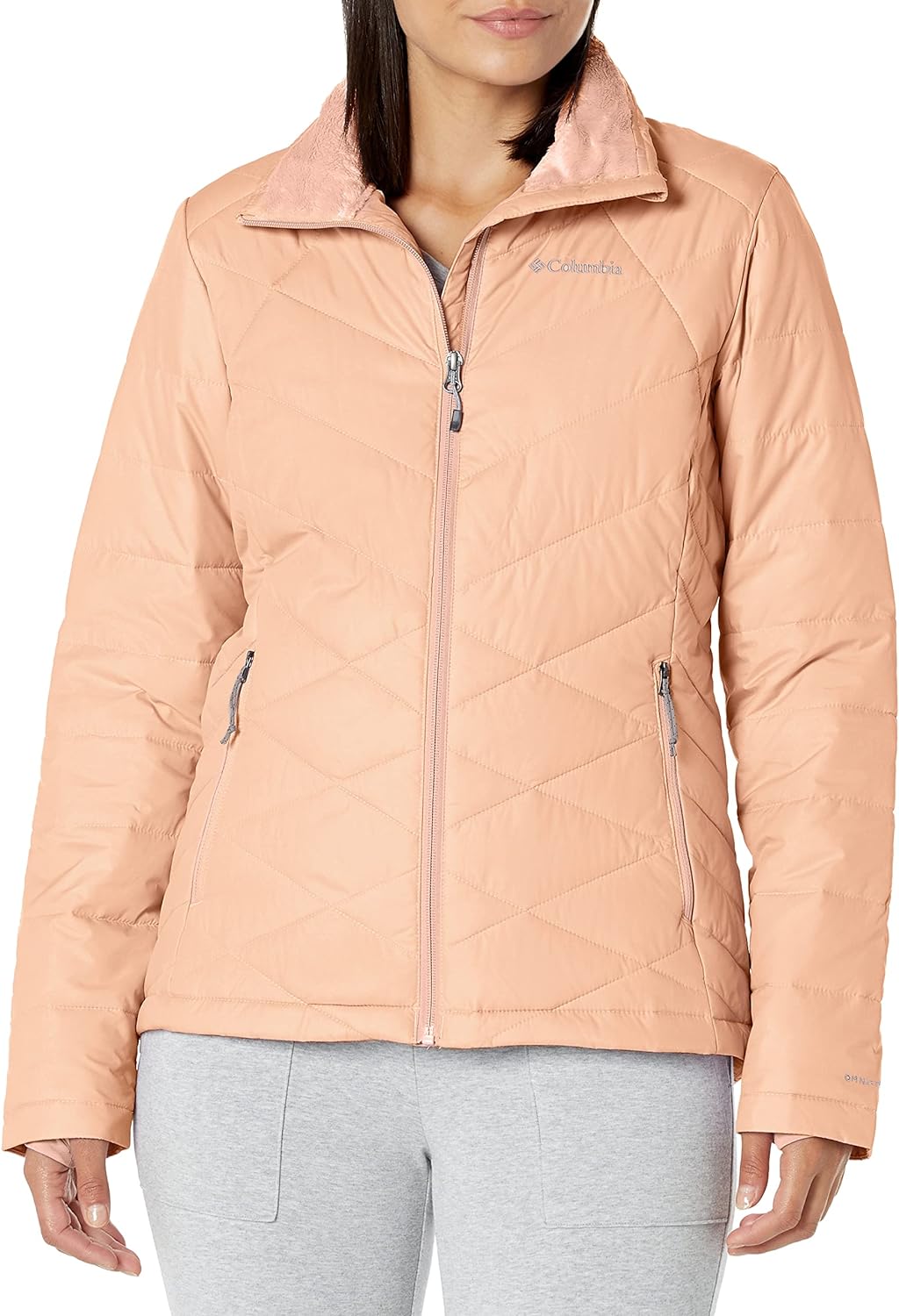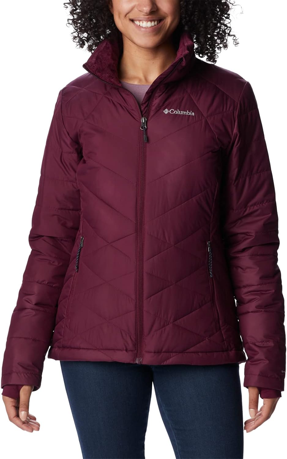 The Columbia Women's Heavenly Jacket combines stylish urban looks with technology to keep you warm and dry. A great fall and winter jacket, you'll love the feminine silhouette shaped in a modern cut. Its water resistant shell is lined with our signature Omni-HEAT reflective lining, along with a yummy plush fleece-lined collar that instills a sense of confidence when the weather turns super blustery and cold.