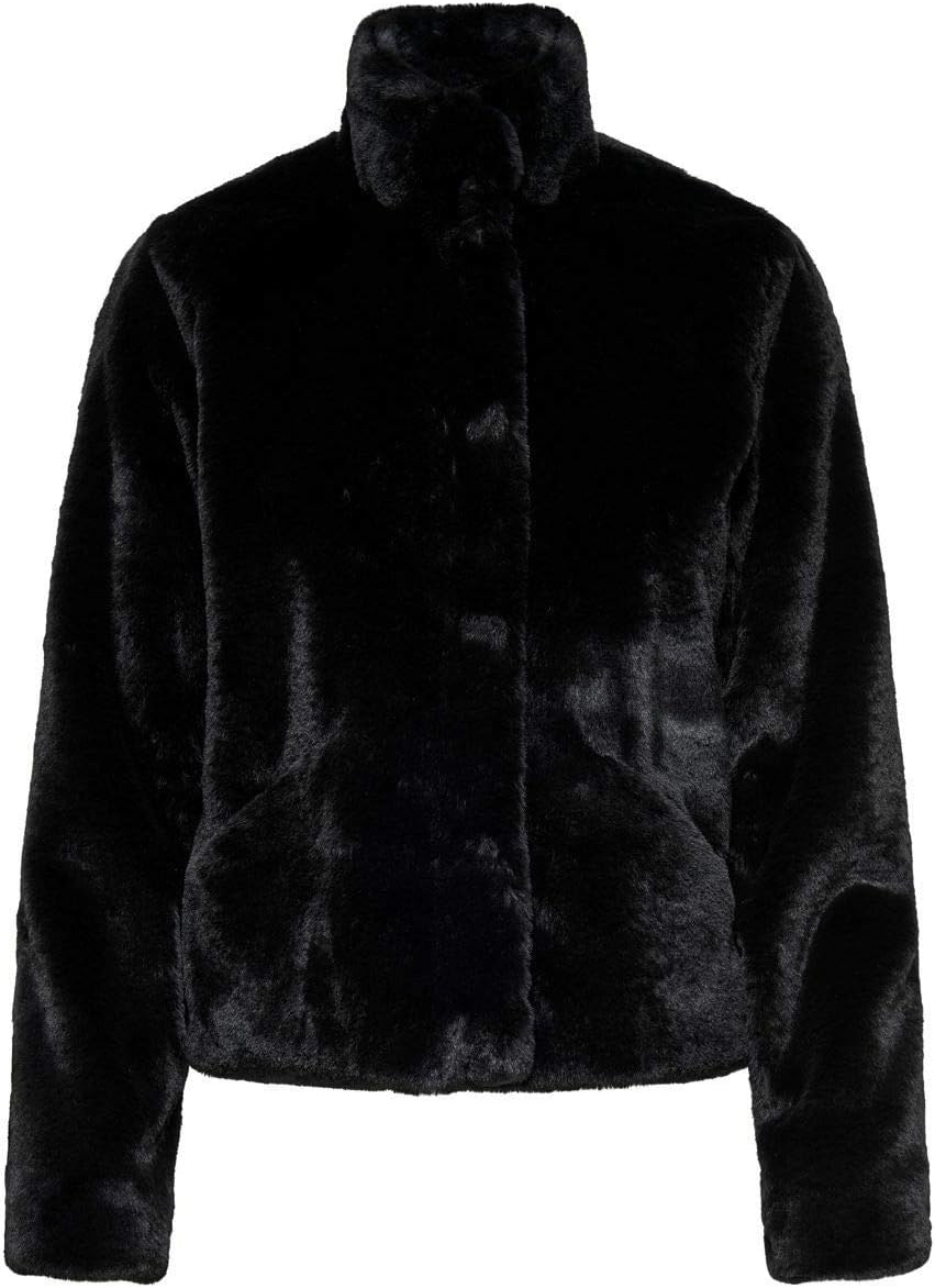 The fluffy jacket by ONLY creates a majestic wearing comfort. The soft faux fur attracts attention and awakens the desire to cuddle up in it. The stand-up collar and the straight shape turn this fake fur coat into an elegant favourite for the winter.
