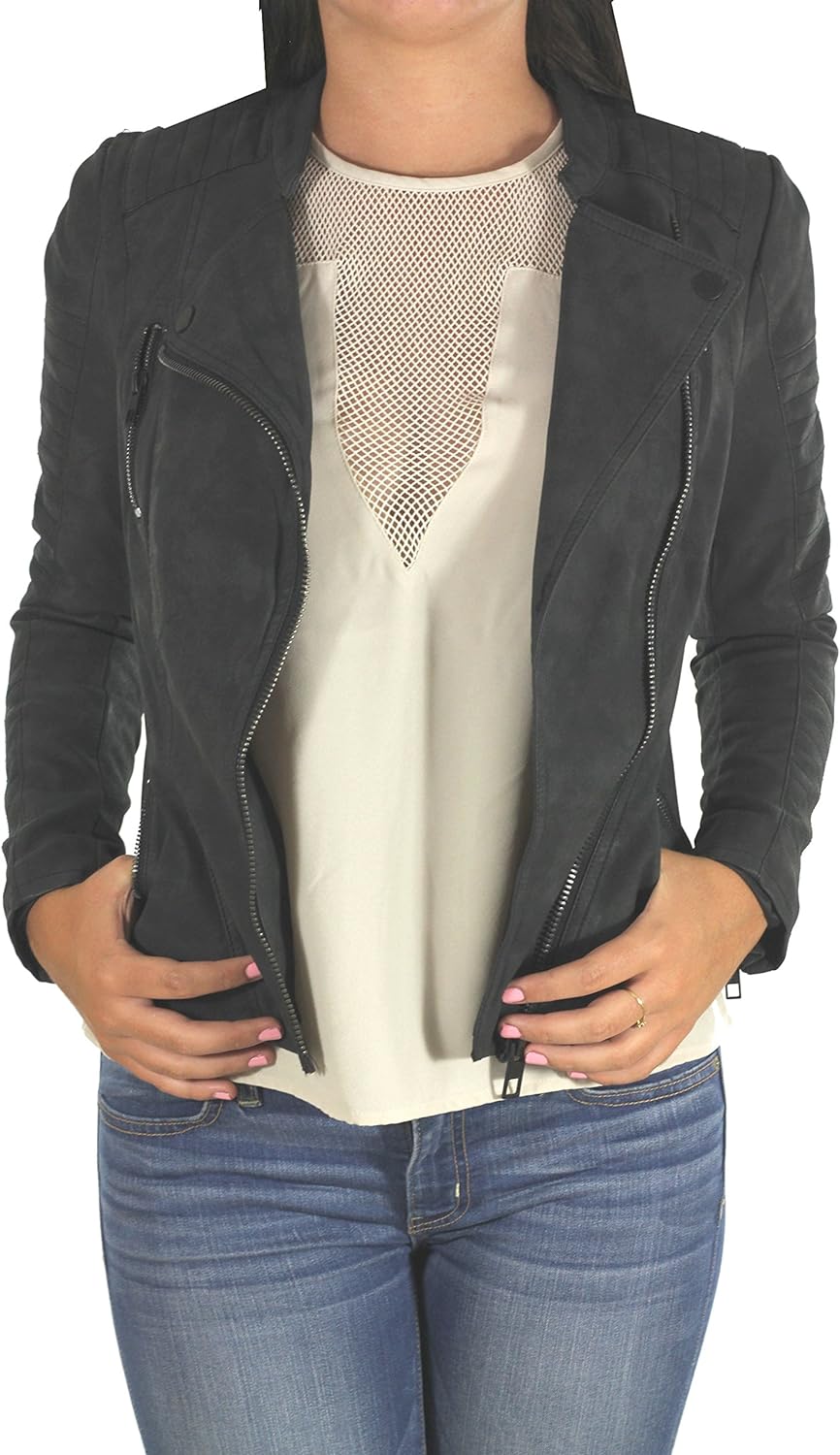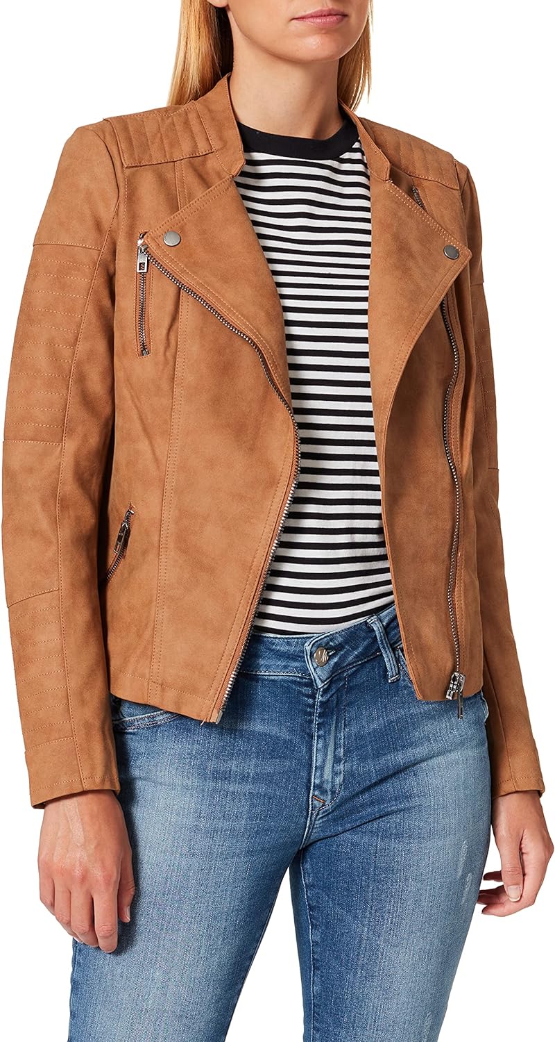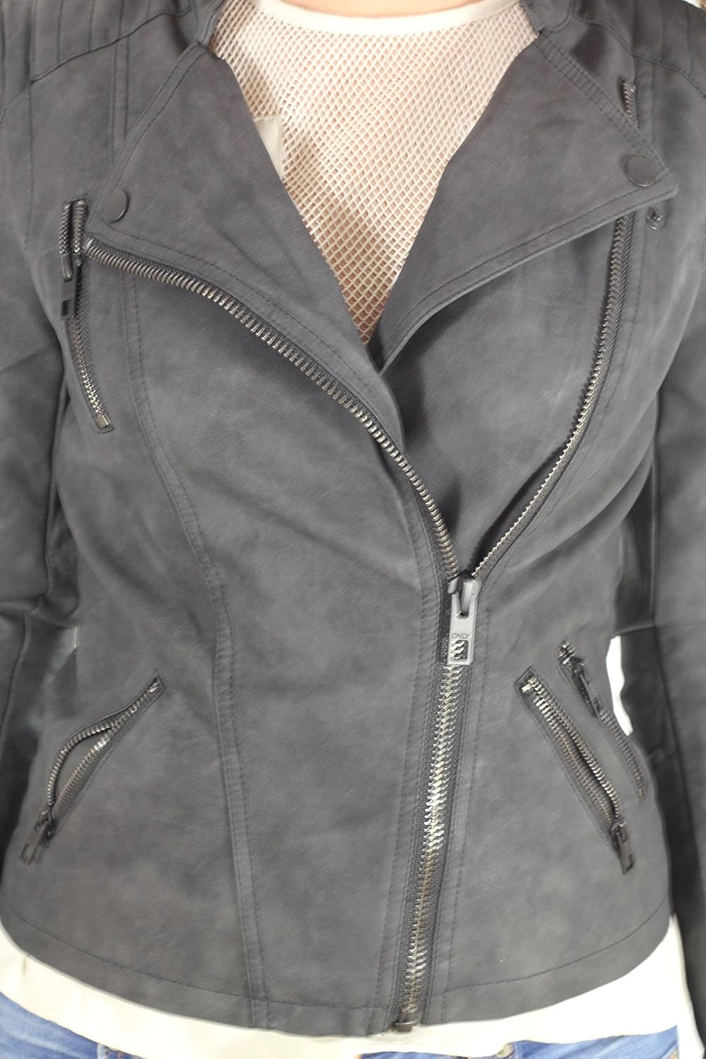 This biker jacket In leather look by ONLY comes with a special asymmetric zipper at front and has many detailing such as the quilted details at the shoulders and the zip cuffs. It is ideal for transitions between the seasons.