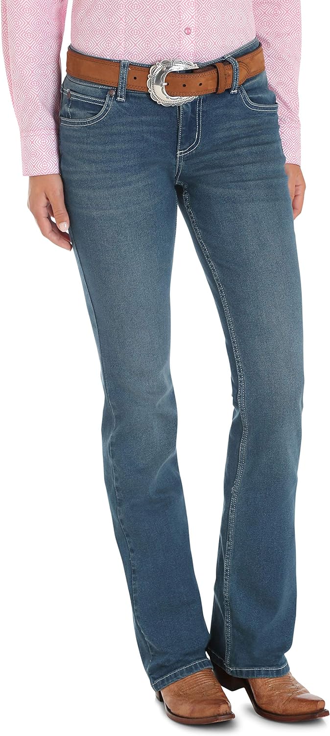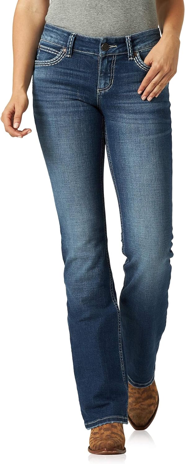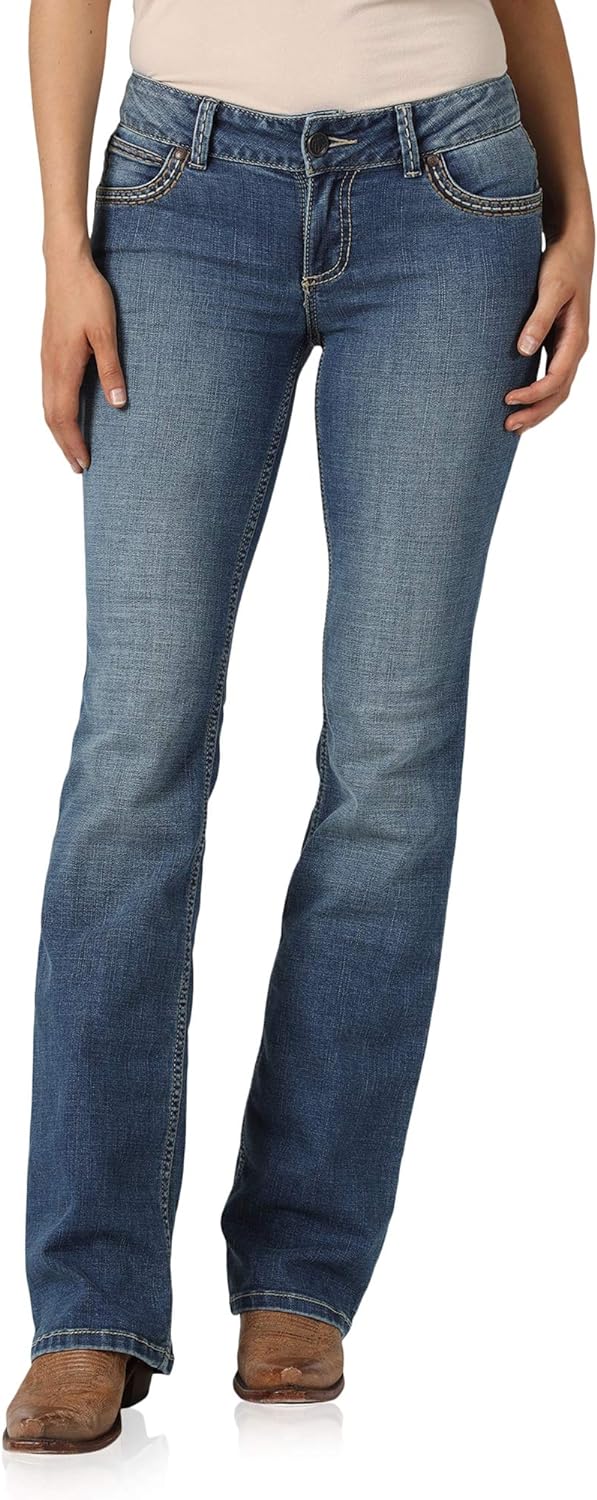 Wrangler Retro Mae Boot Cut Jean. These jeans are made with style and comfort in mind. Constructed with durable materials and a curve-flattering fit, these boot cut jeans add a touch of retro style to any outfit. Finished with iconic Wrangler embellishments and contrast seams, these classic jeans will be your next go-to jean. KEY FEATURESBoot Cut. Fitted through the seat and thigh.Low Rise. Sits just below the waist.Comfortable Wear. Cotton/spandex blend.Embellishments. "W" embroidery on back pockets.Pockets. Five pocket styling.