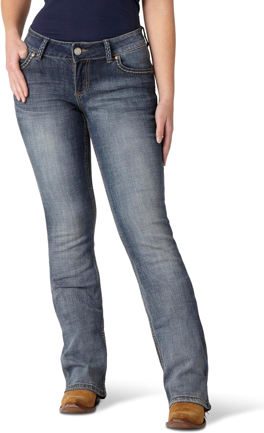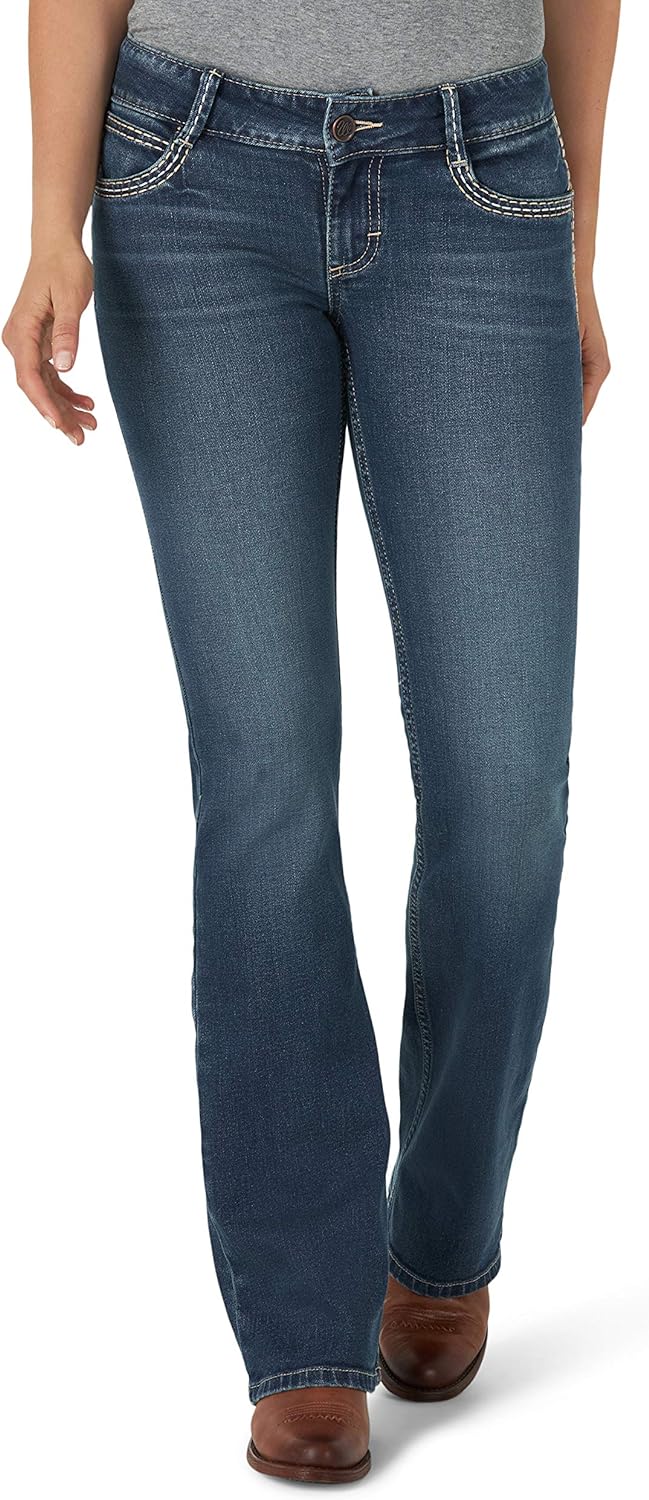 - CLASSIC EMBELLISHMENTS. This boot cut jean is finished with our Wrangler “W” stitching on the back pockets and a Wrangler logo patch. Maintain that effortless classic style with a touch of retro.