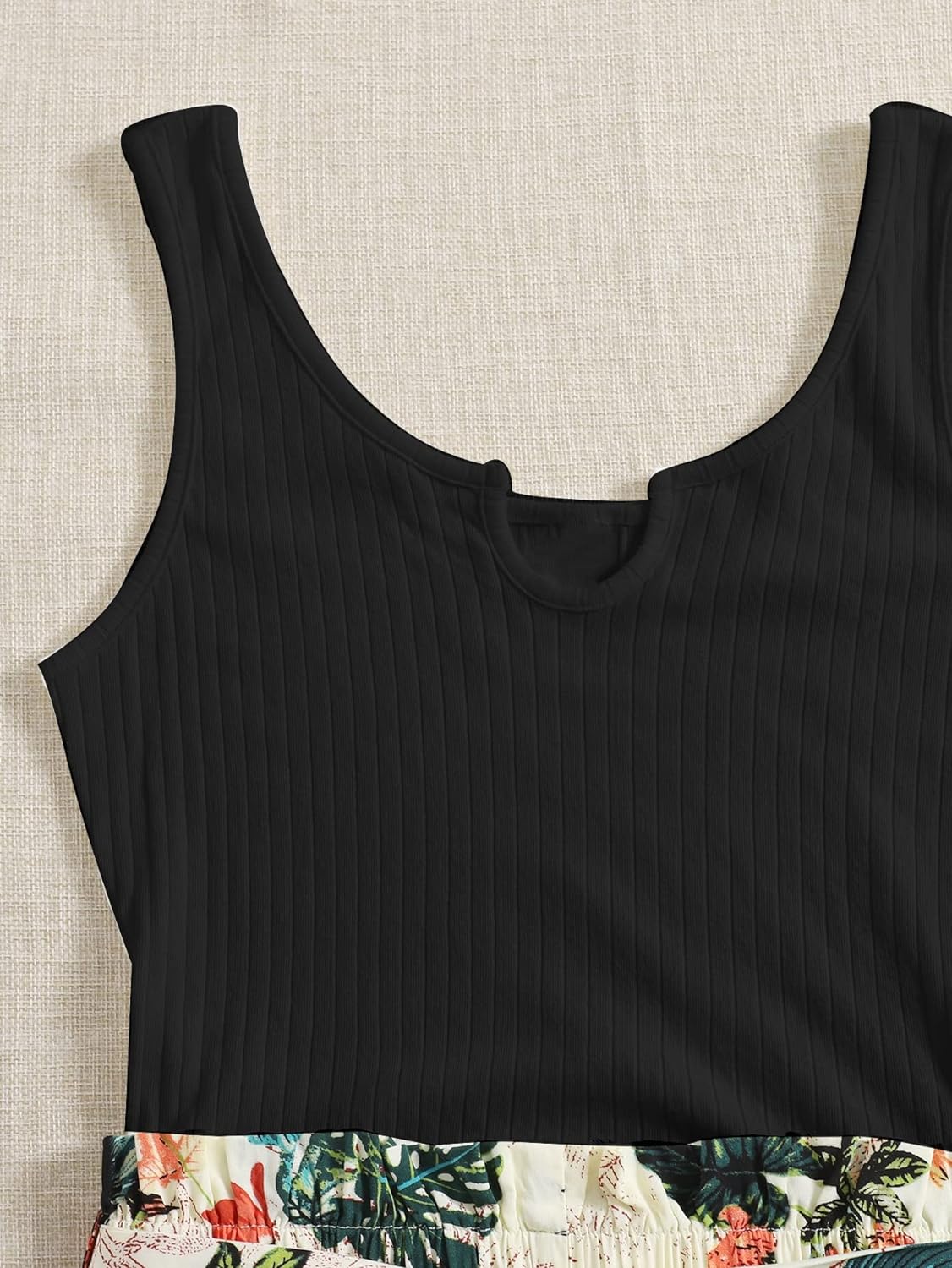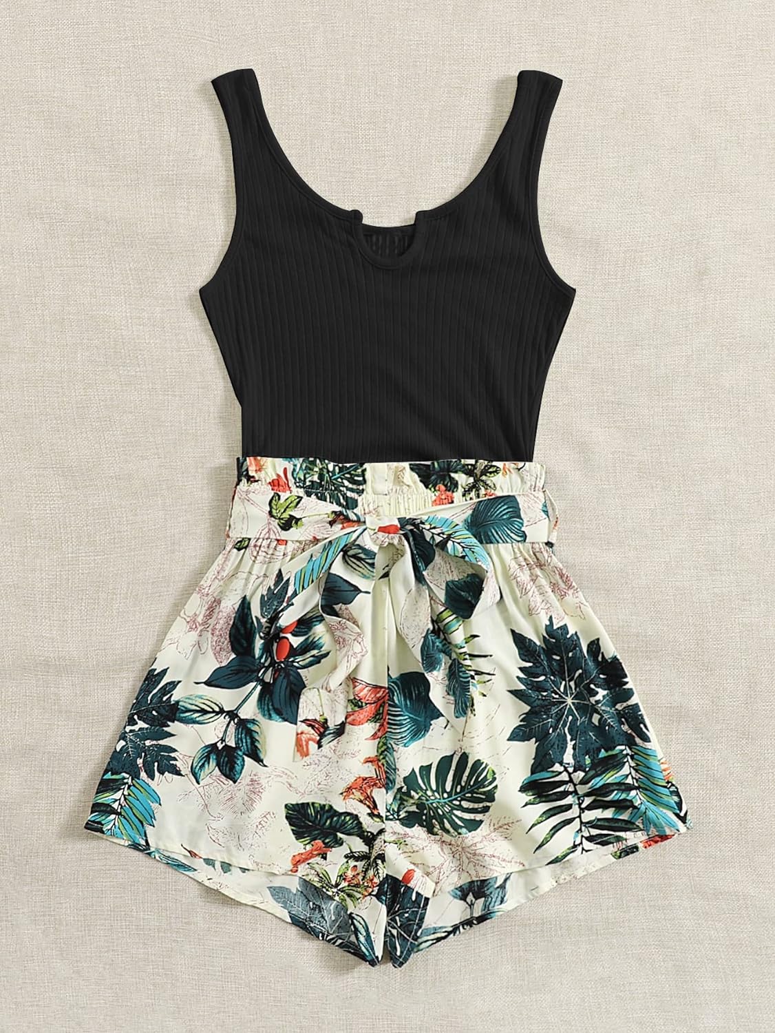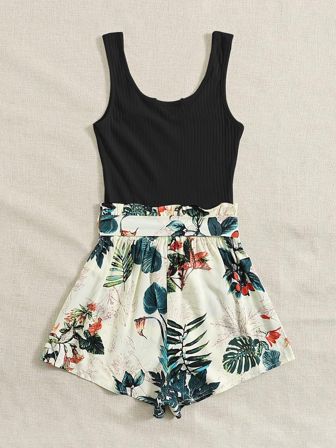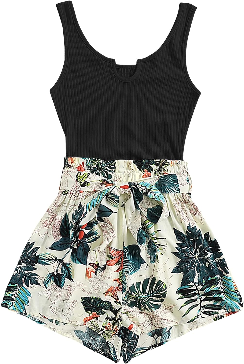 GORGLITTER Women's Ribbed Belted Sleeveless Tank Romper Tropical Print – BUYO