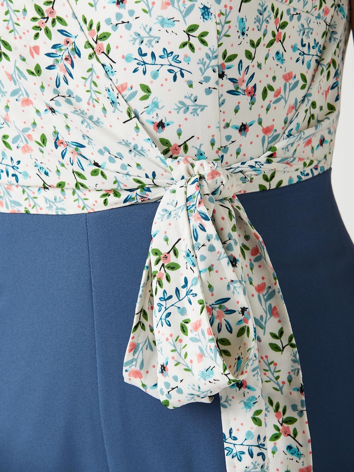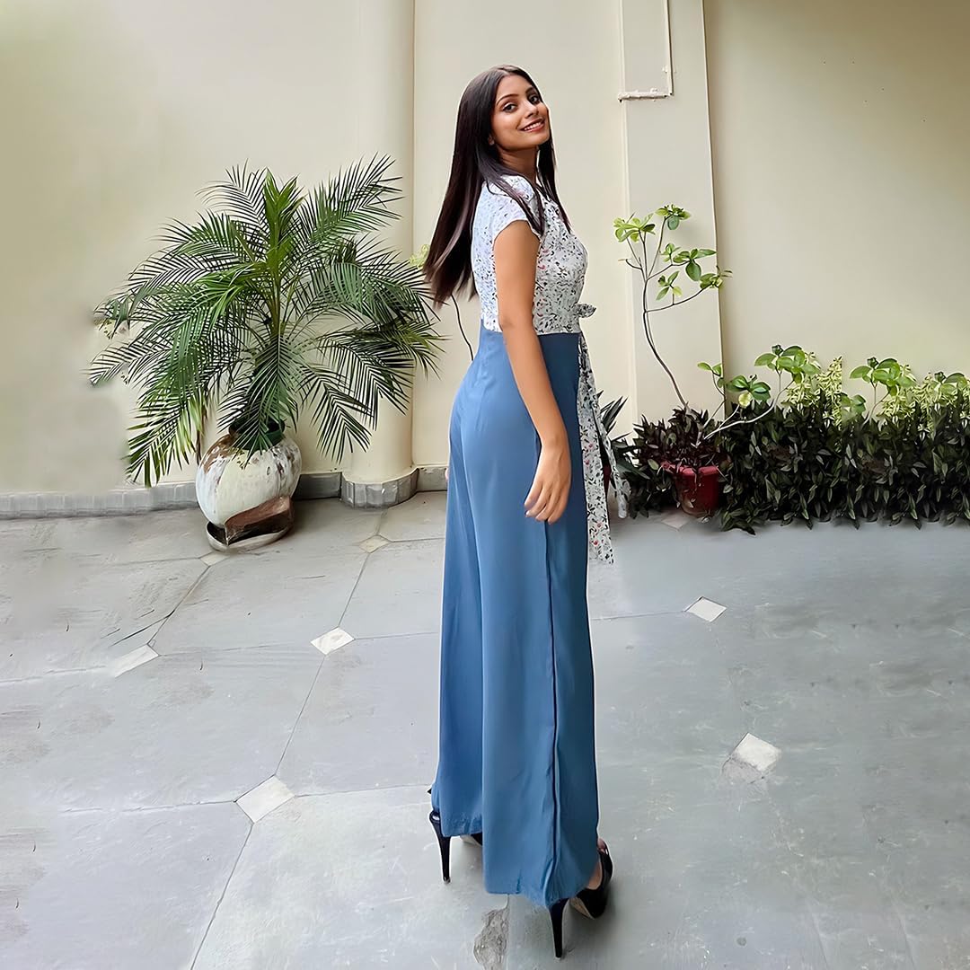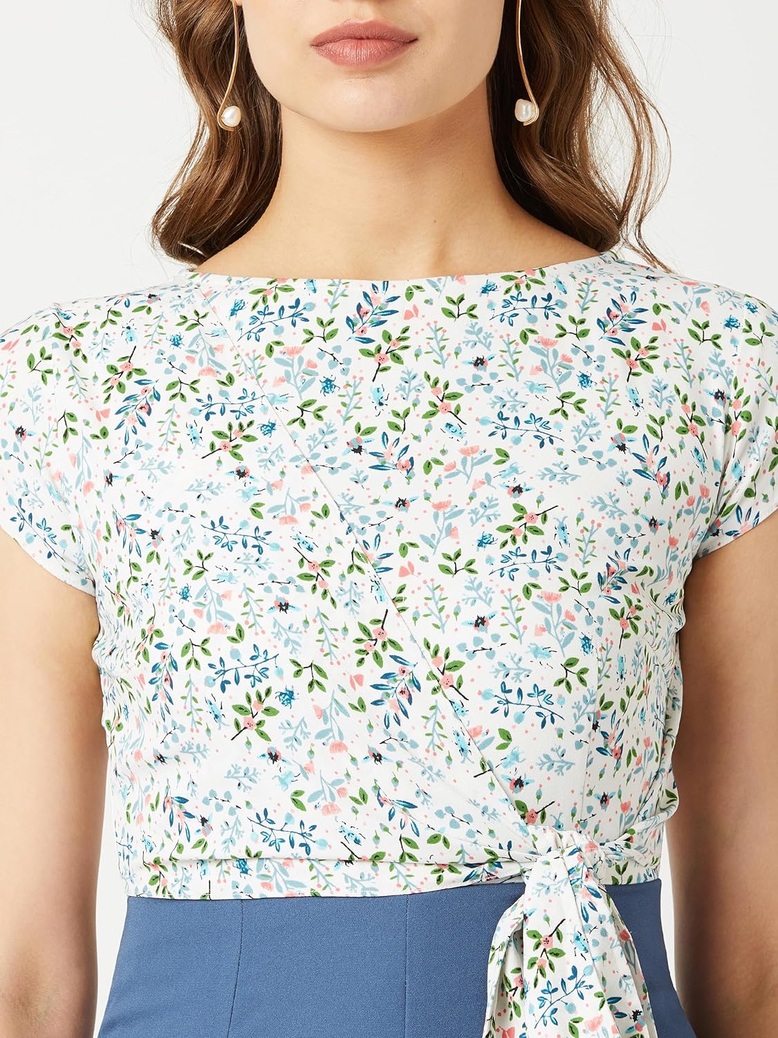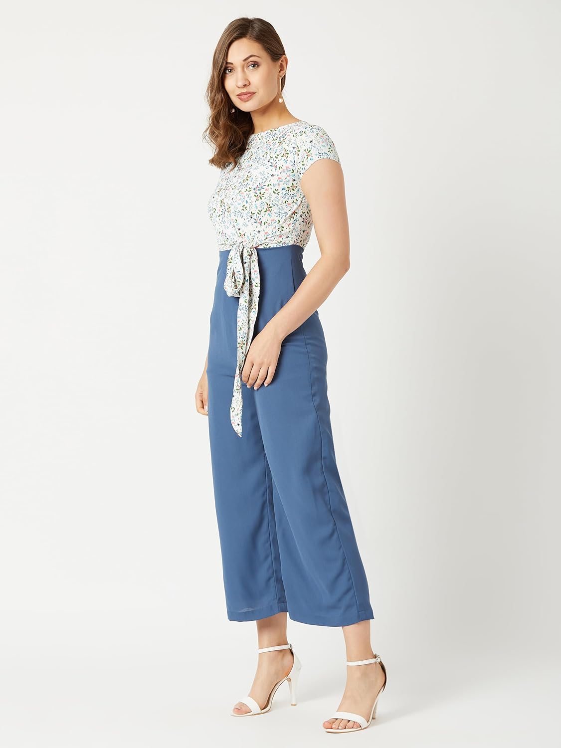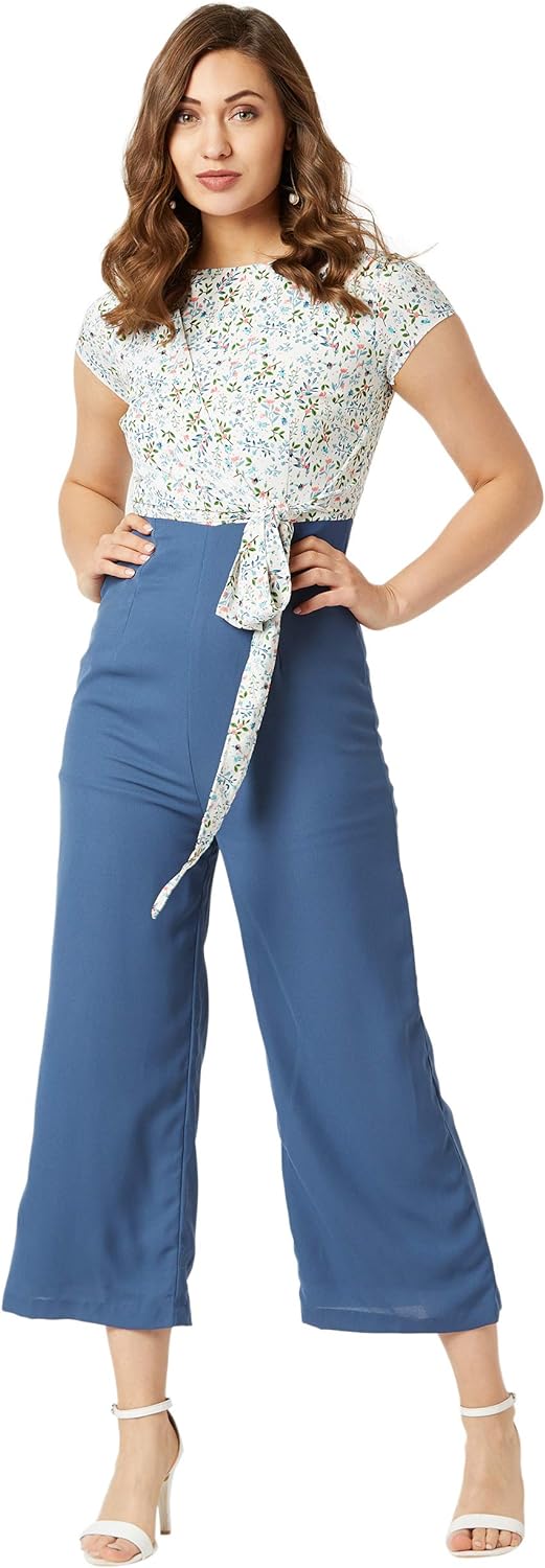 - Style: Waist Tie-Up/Wide Leg|Pattern: Floral|Fit: Relaxed Fit|Neck: Round Neck|Sleeves: Short Sleeve|Length: Regular