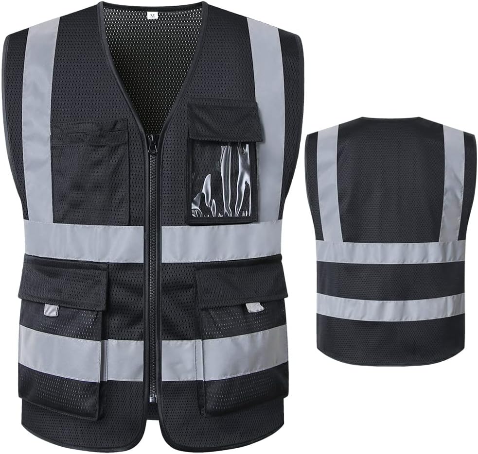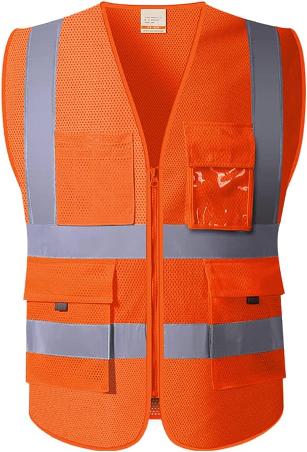High visibility mesh reflective safety vest with zipper and pockets | – BUYO