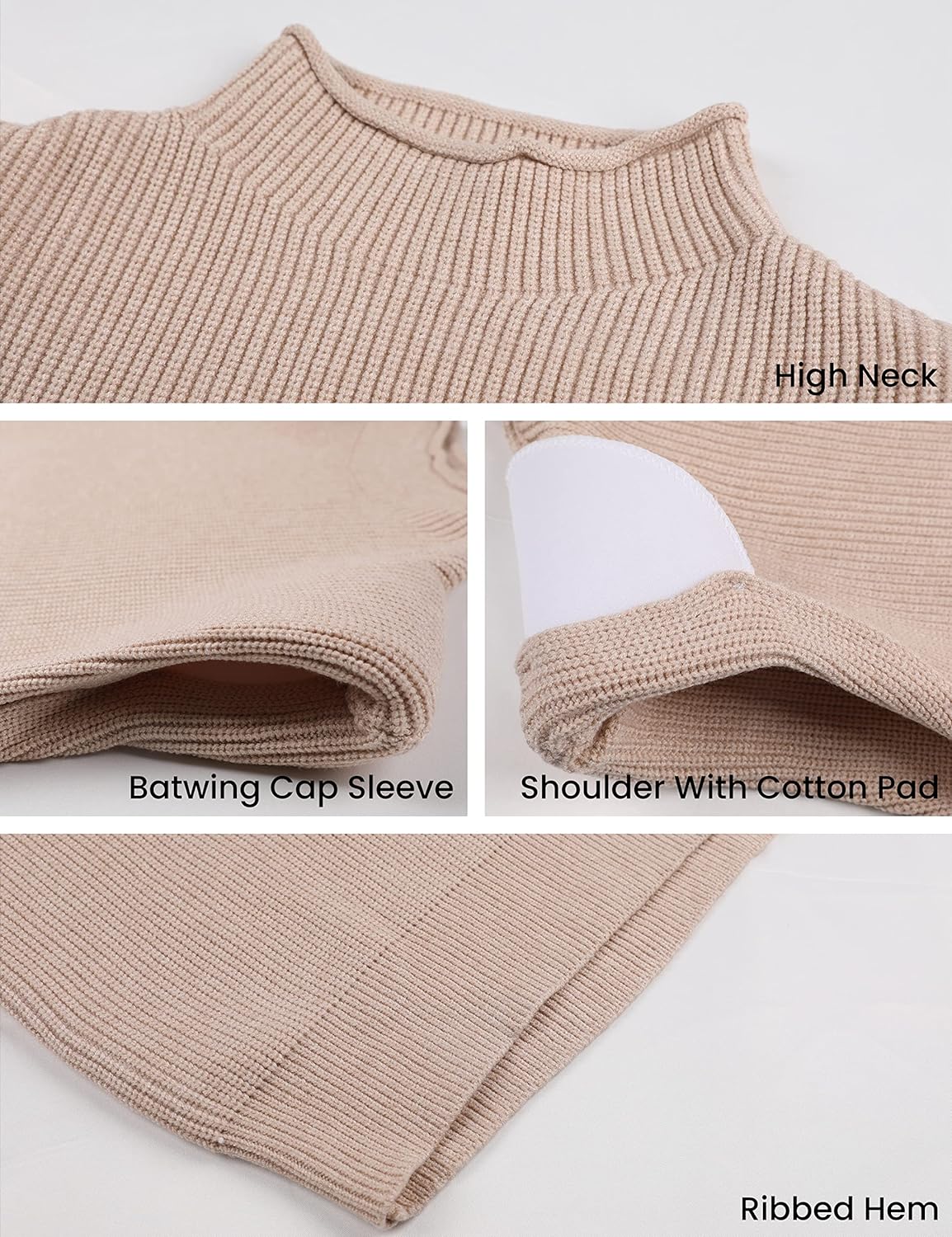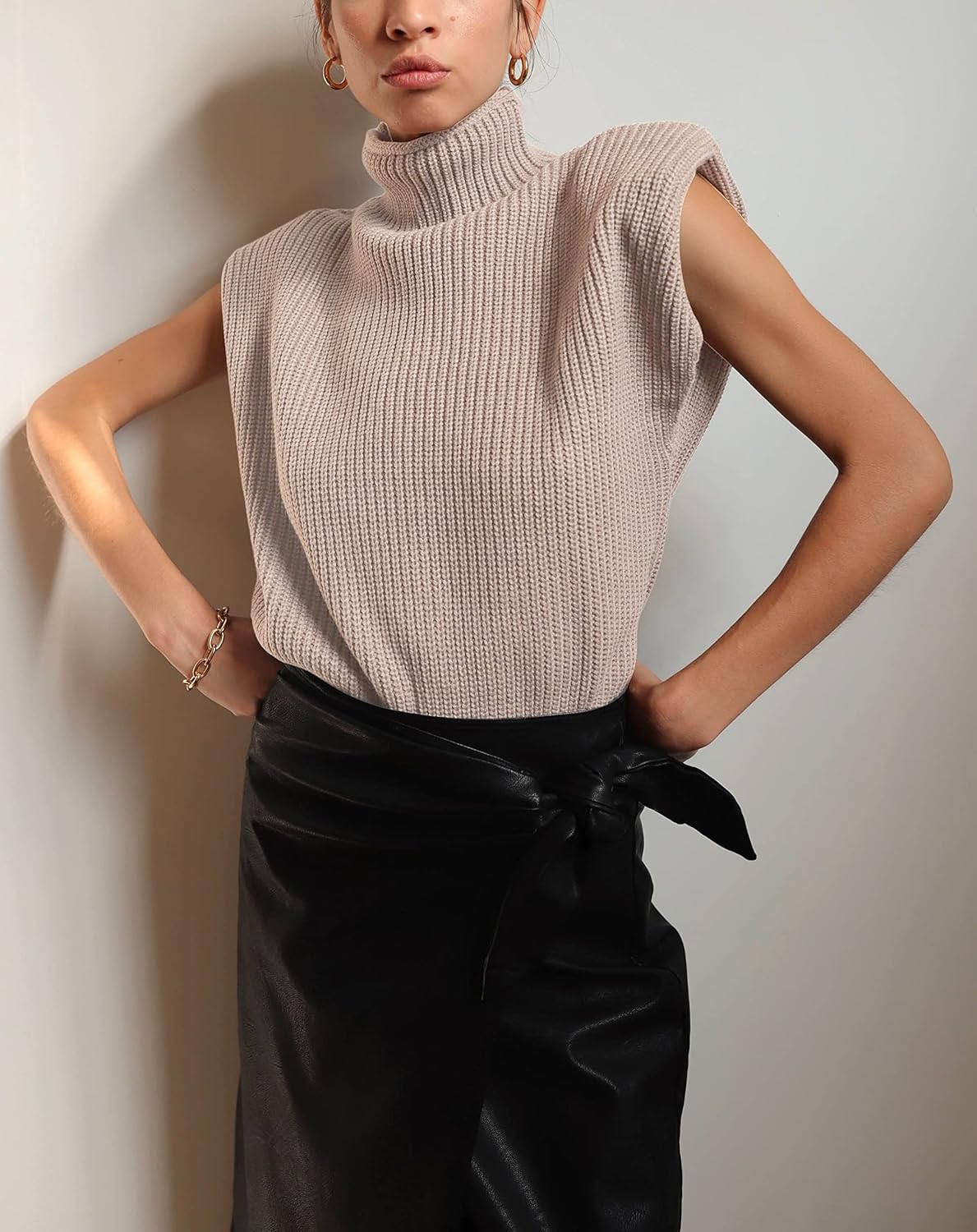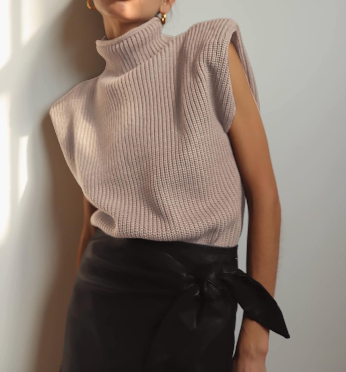 Huaqiao Women's High Neck Knit Sweater Vest Padded Shoulder Turtleneck Sweater Sleeveless Ribbed Pullover Tank Top