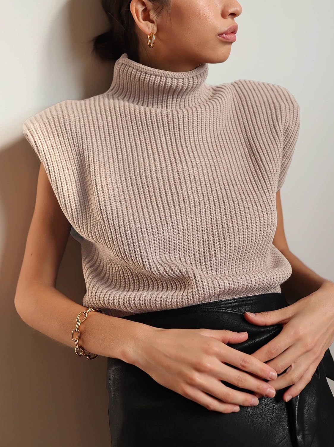 - Cute turtleneck vest with pad shoulder can frames body so well, relaxed fit, great for layering