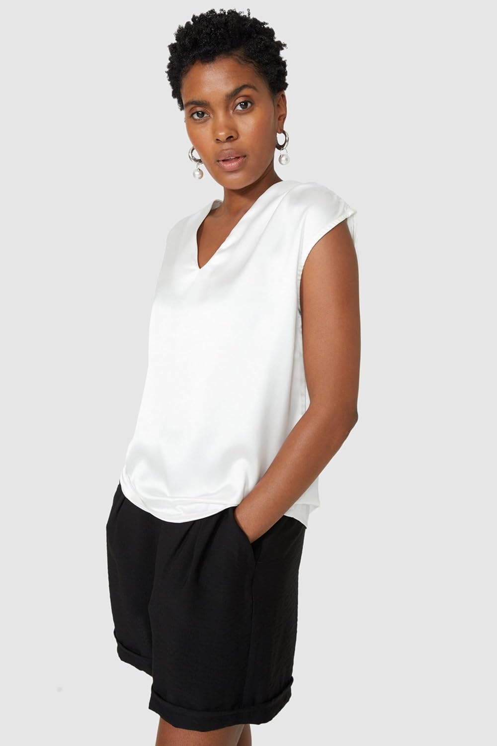- Principles Women's Gathered Shoulder Satin Vest 40 Cream