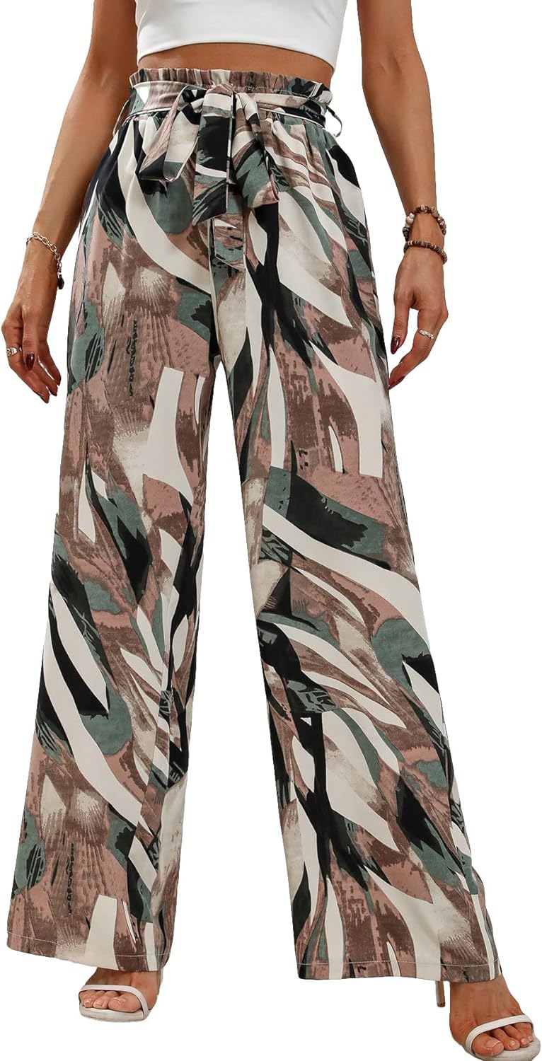GORGLITTER Women's Boho Graphic High Waist Belted Loose Wide Leg Pants – BUYO