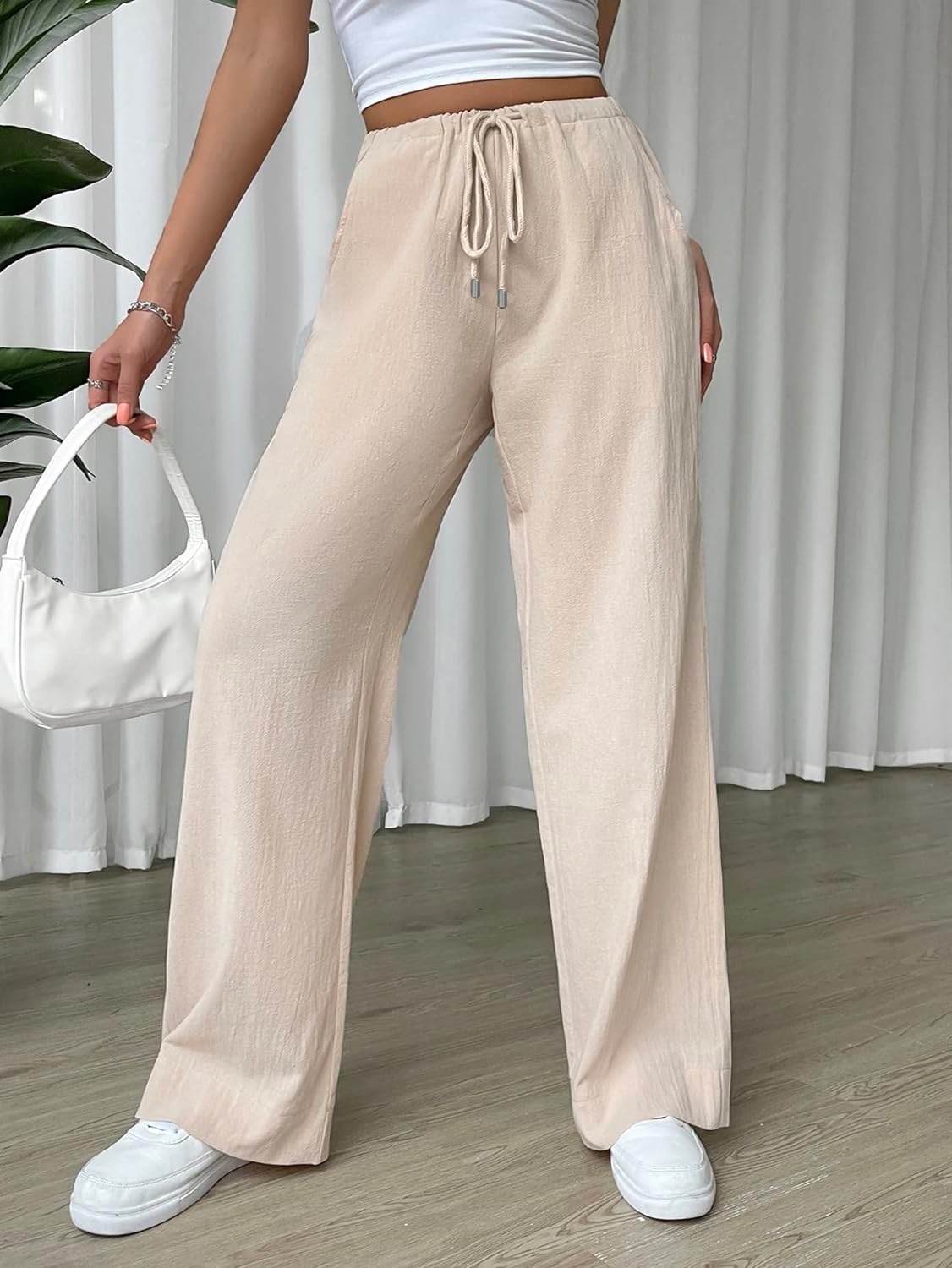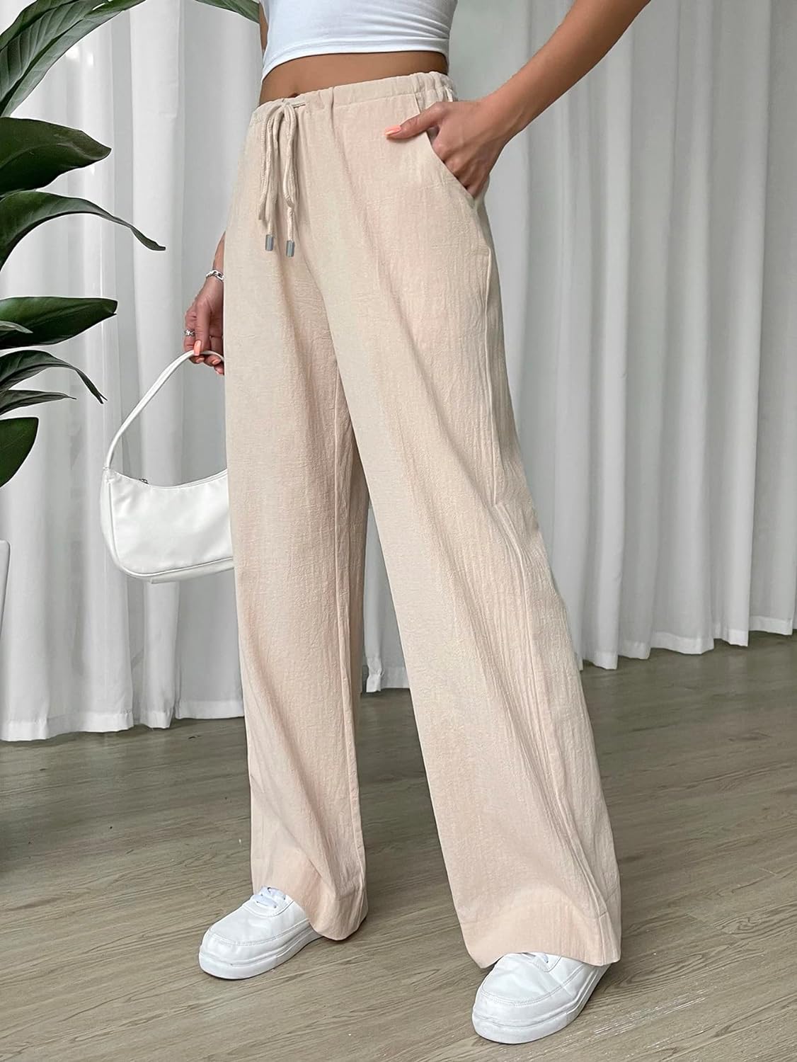 - Features: drawstring waist, slant pocket, wide leg, loose pants