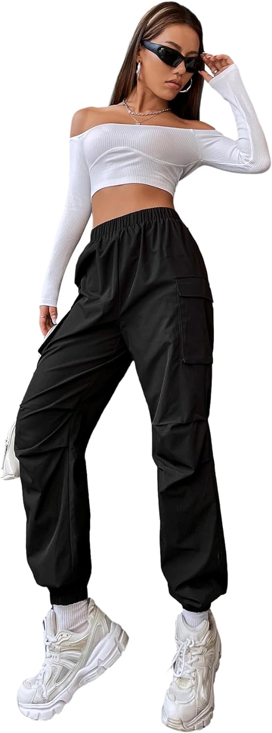 GORGLITTER Women's Elastic Waist Flap Pocket Workout Pants Jogger Y2K – BUYO