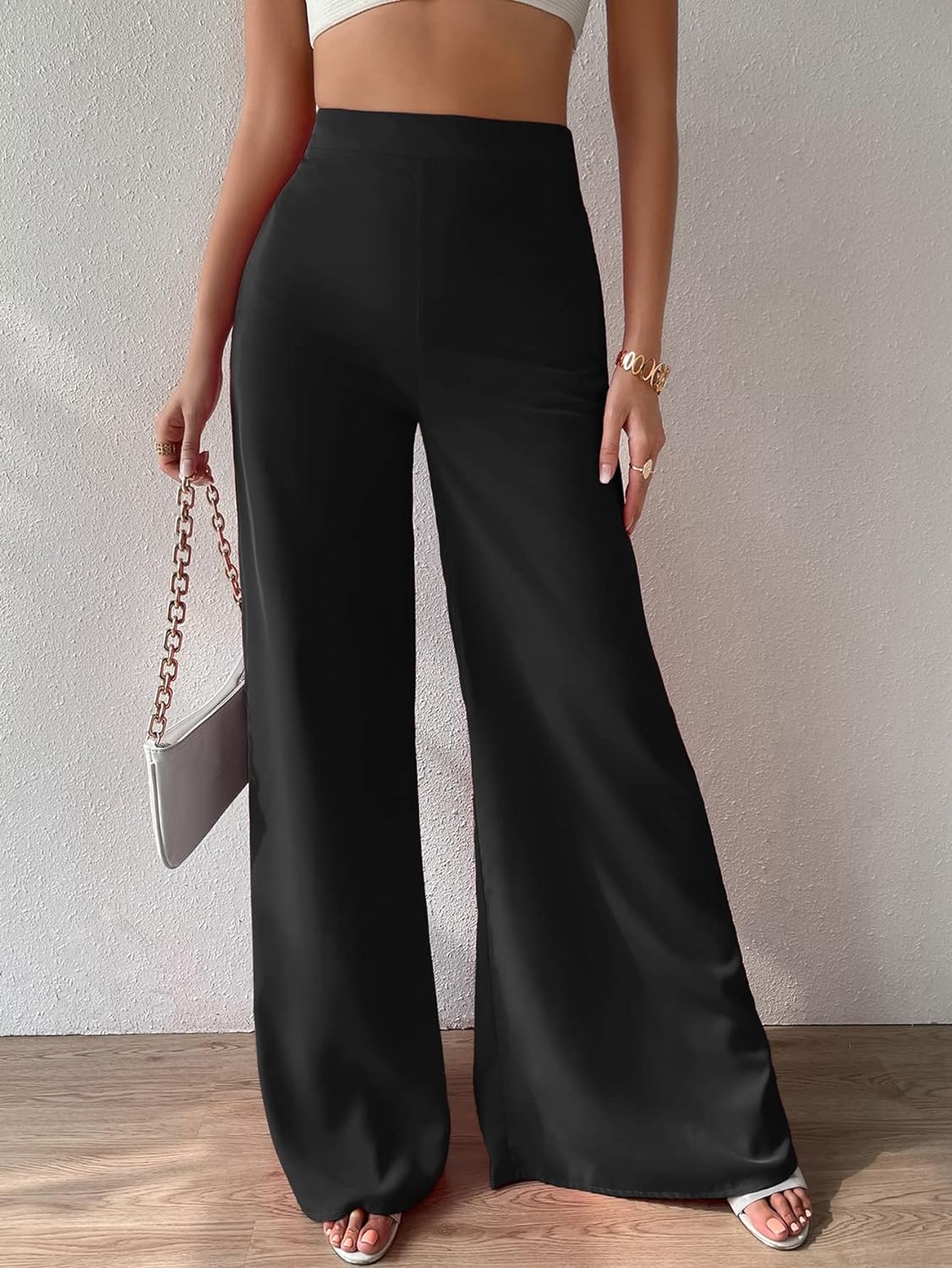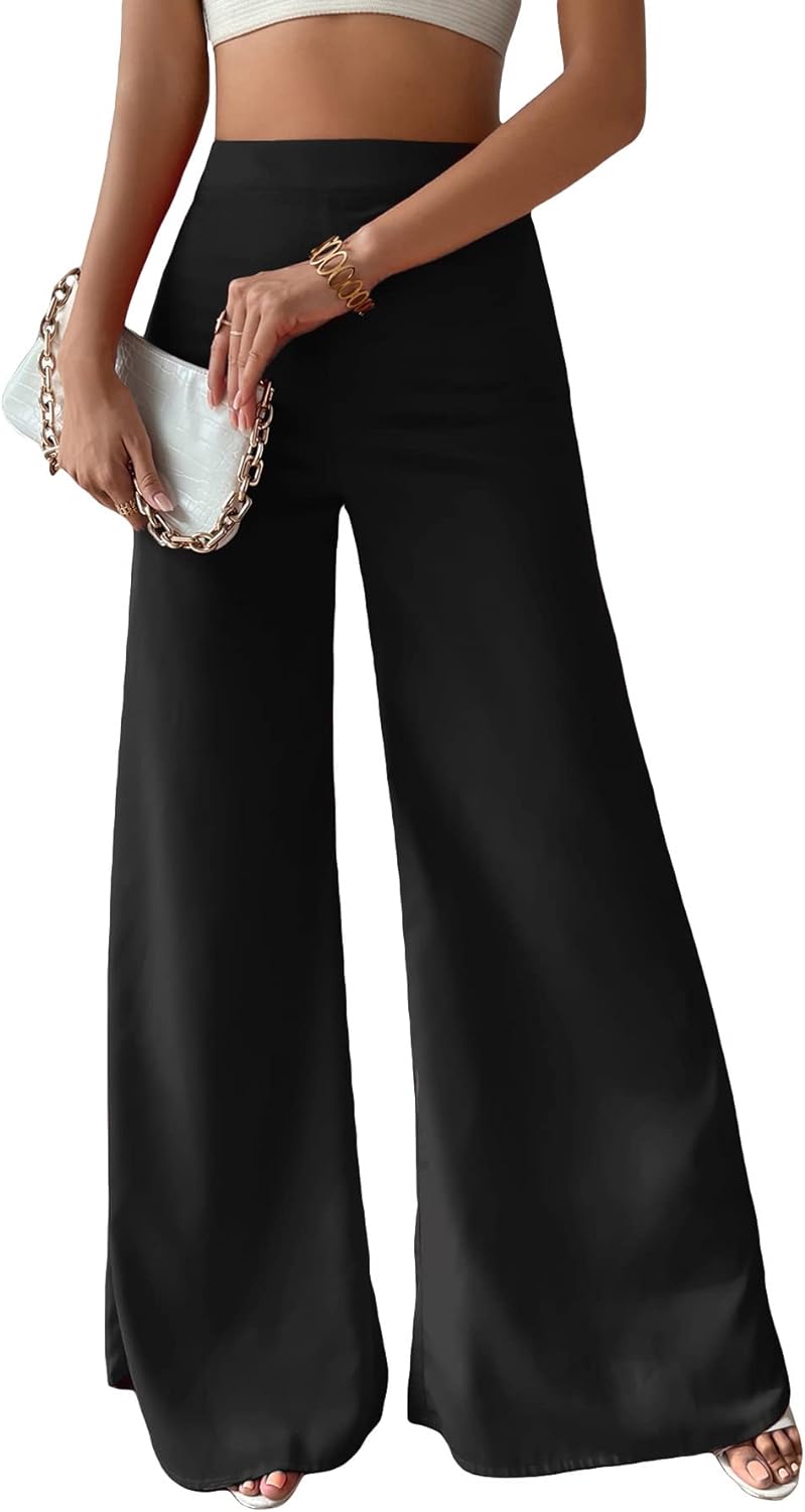• Features: High waist, wide leg, solid, basic, casual pants for women