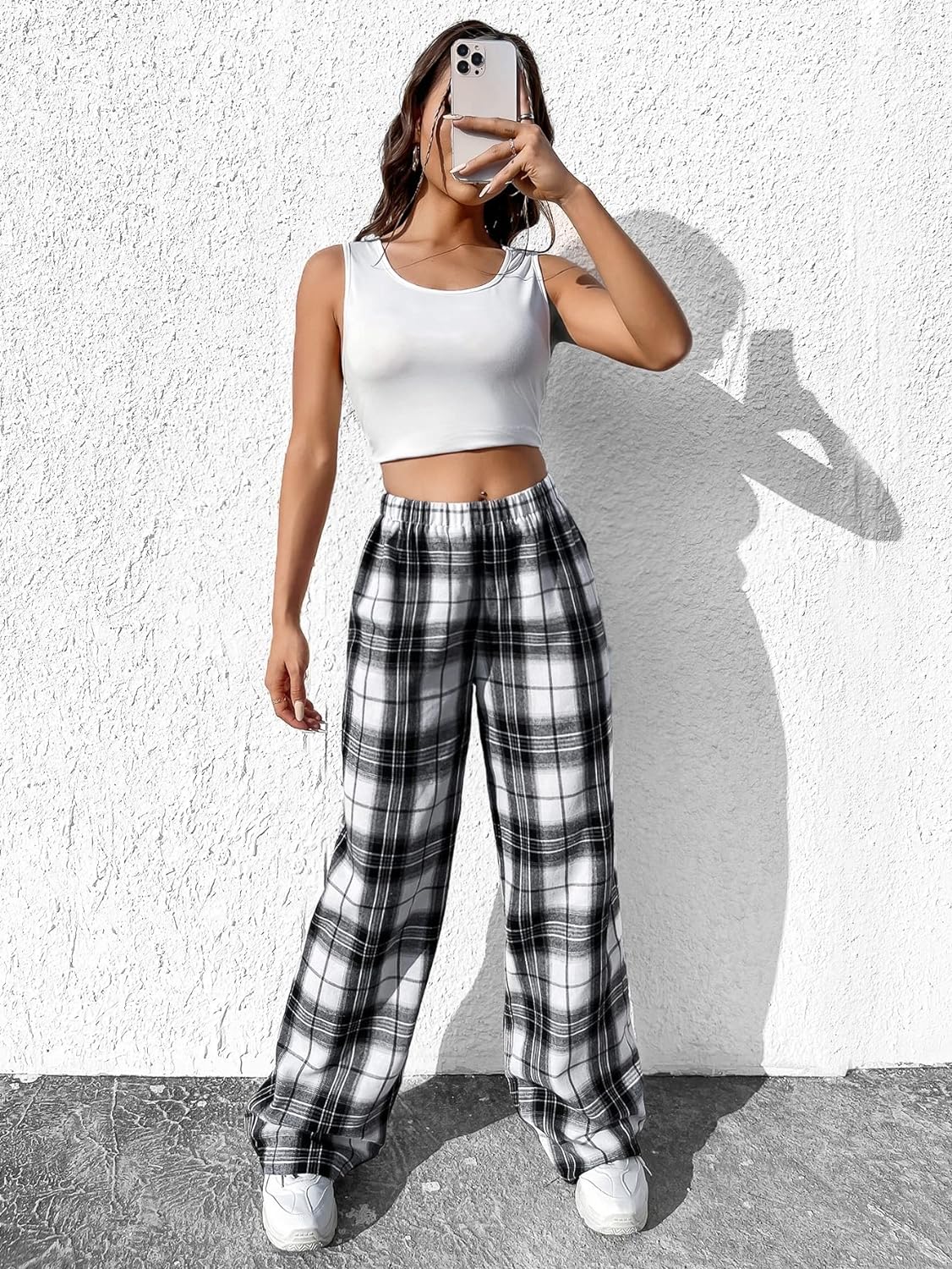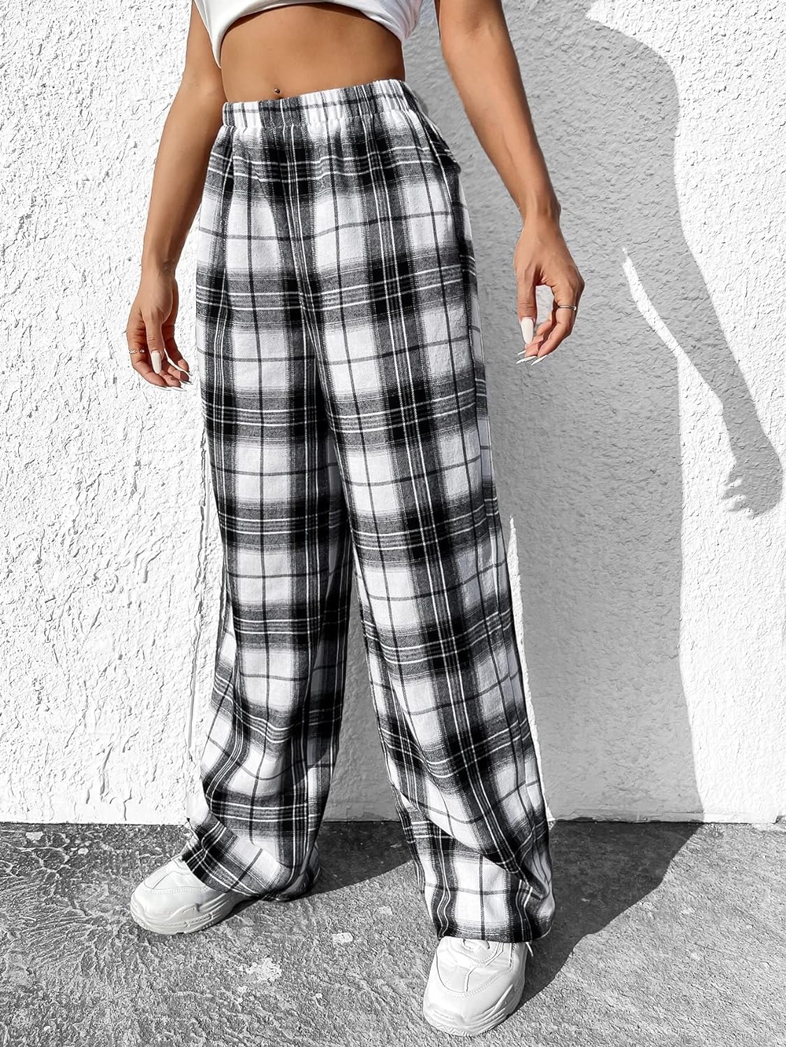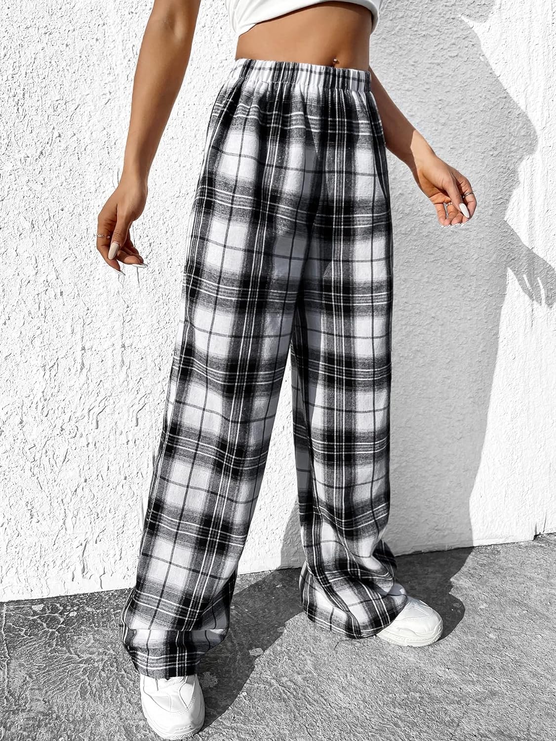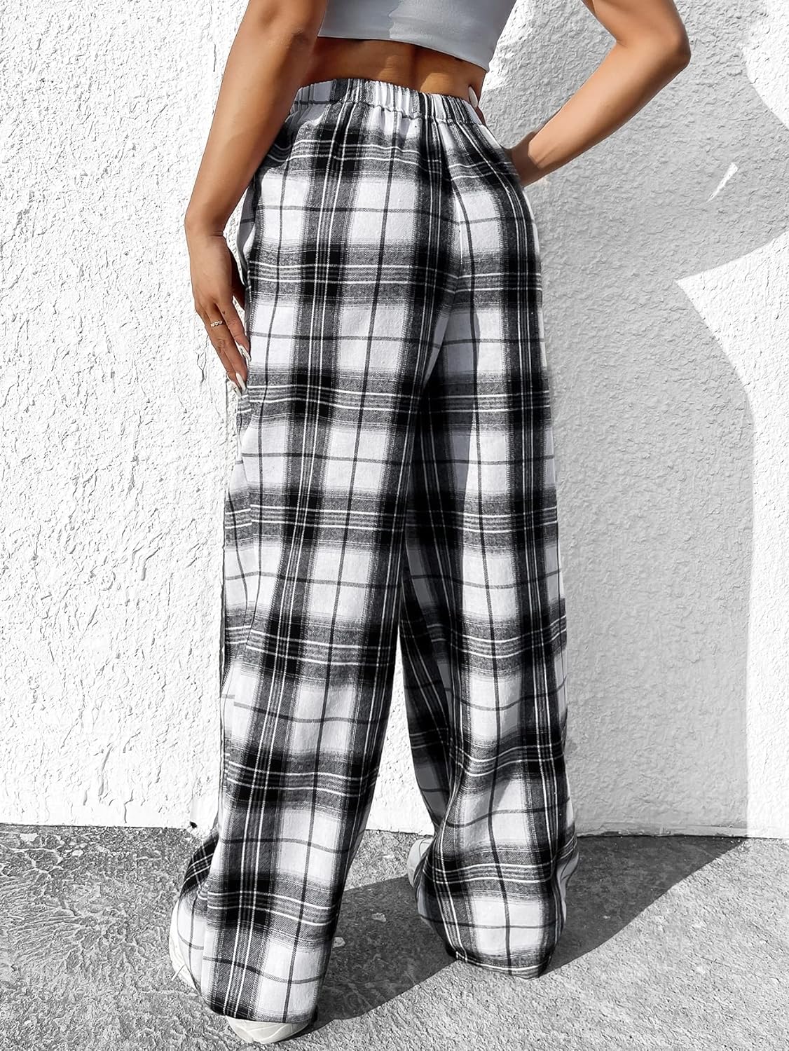 GORGLITTER Women's Loose Plaid High Elastic Waist Casual Wide Leg Pant – BUYO