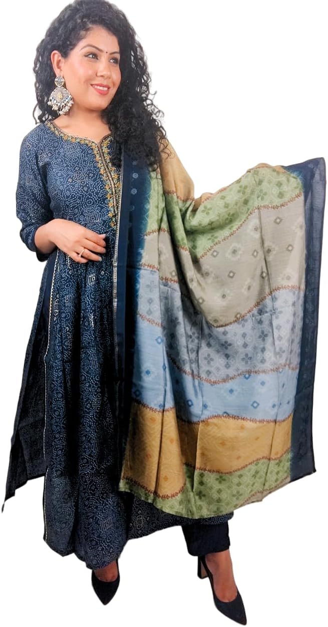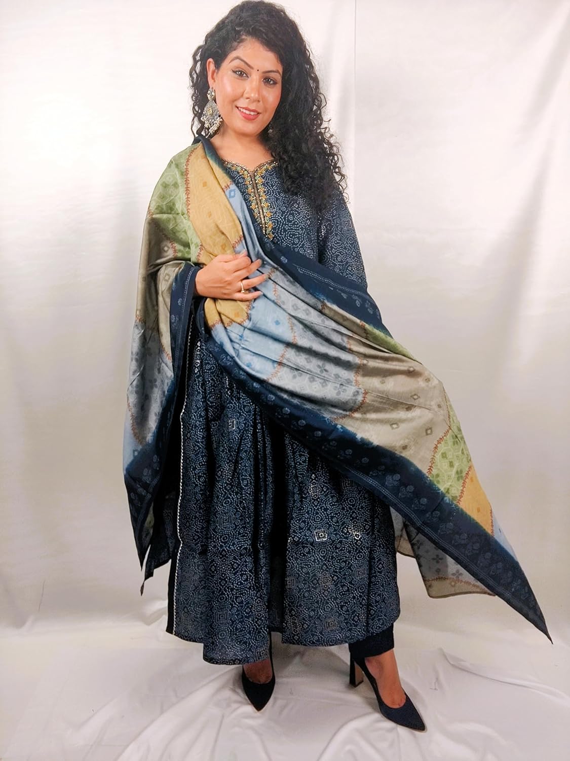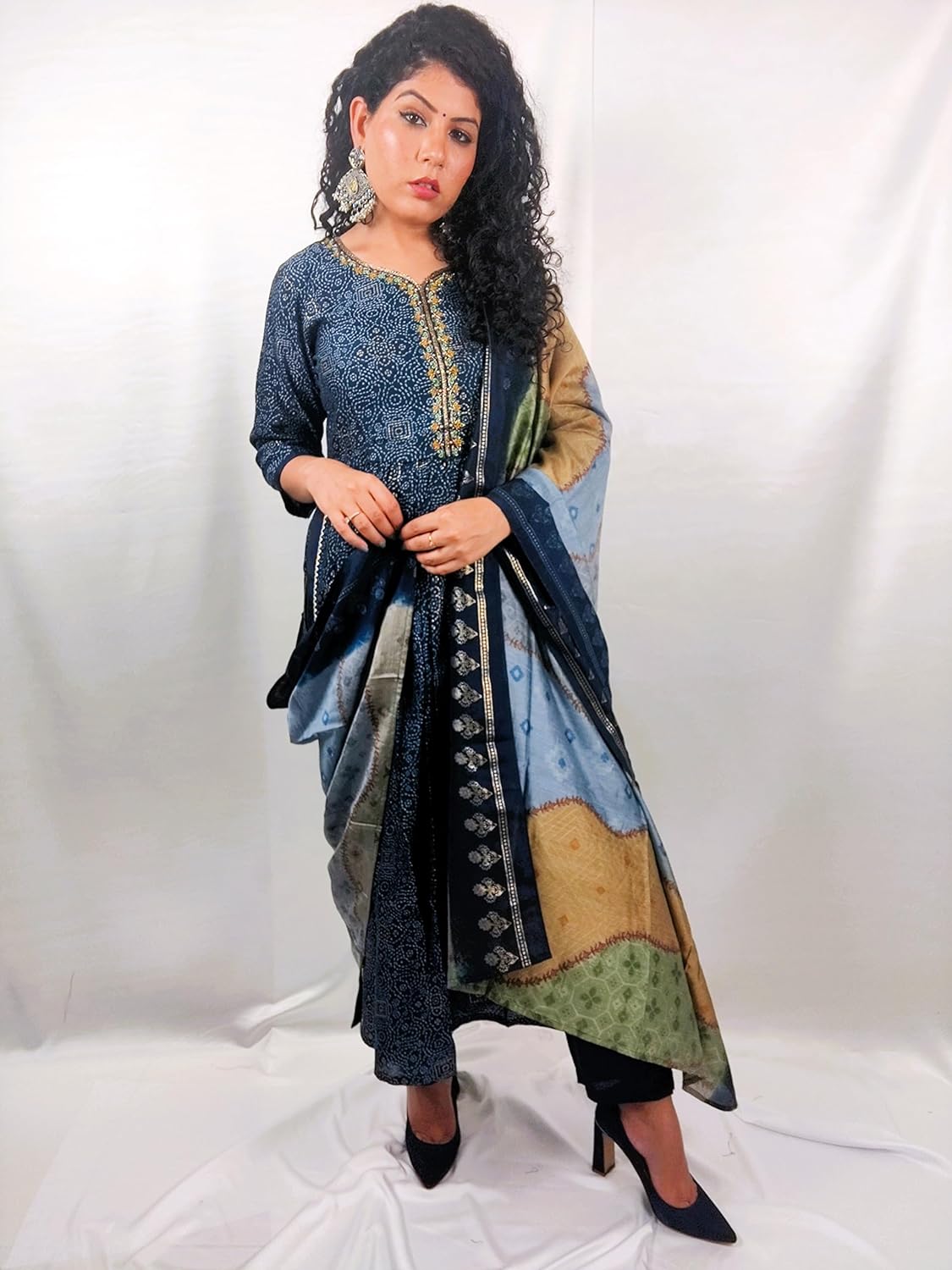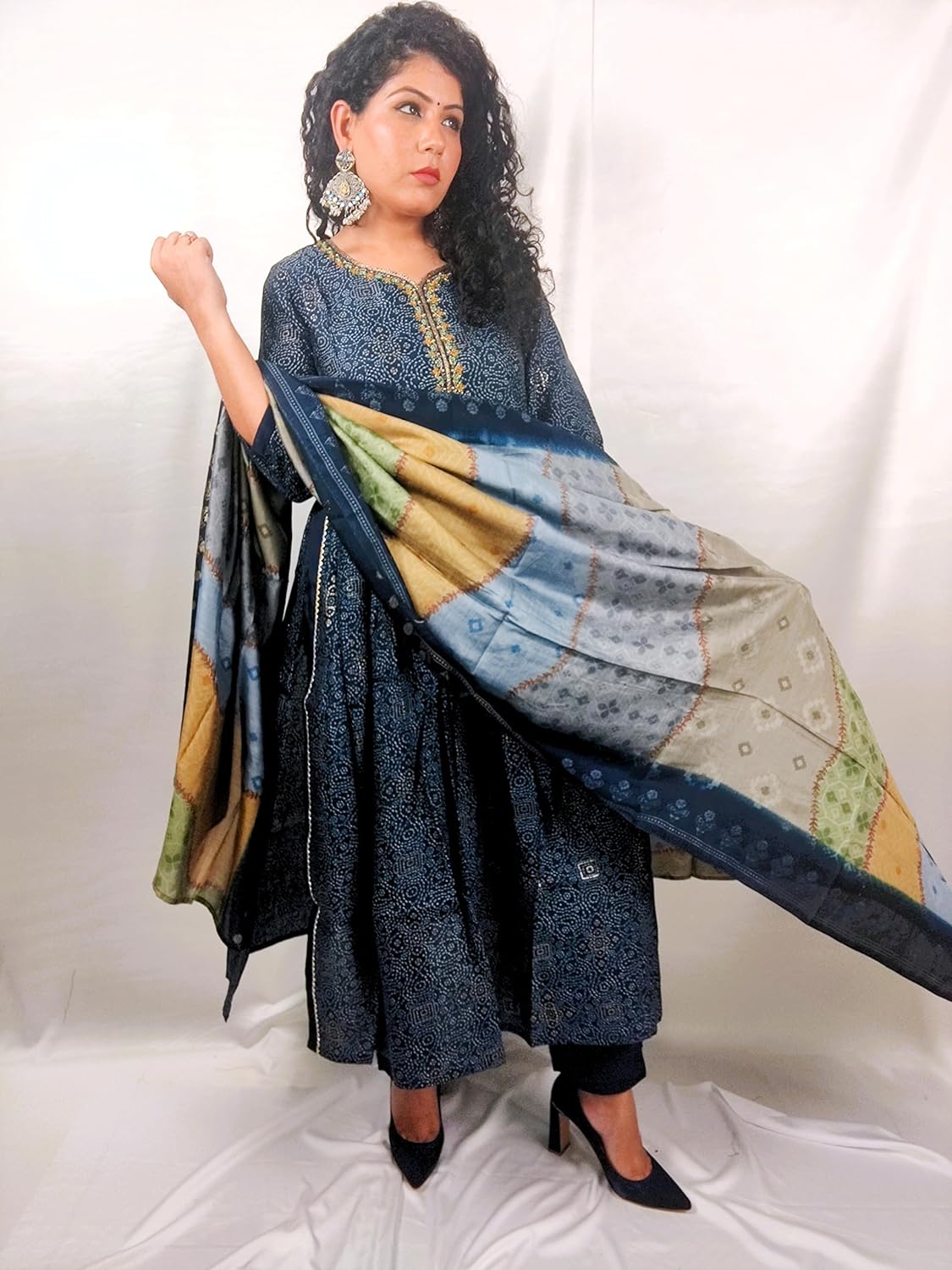 Stylish Nyra Cut Muslin Blue Printed Kurta Pant Dupatta Set - Designer – BUYO