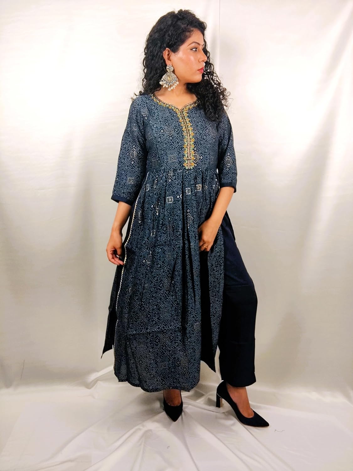 Shop now from PRIYA'S PANACHE and indulge in the allure of our muslin fabric Naira cut kurta set, a perfect choice for those who appreciate the elegance and charm of traditional attire with a contemporary twist.