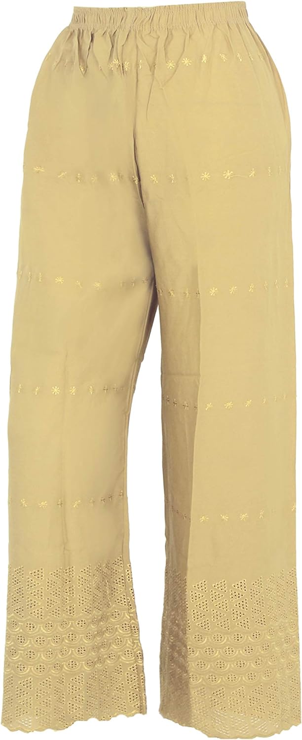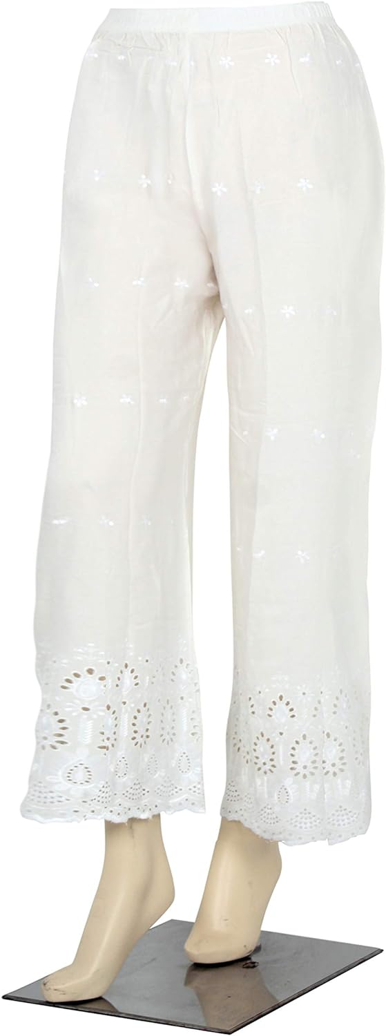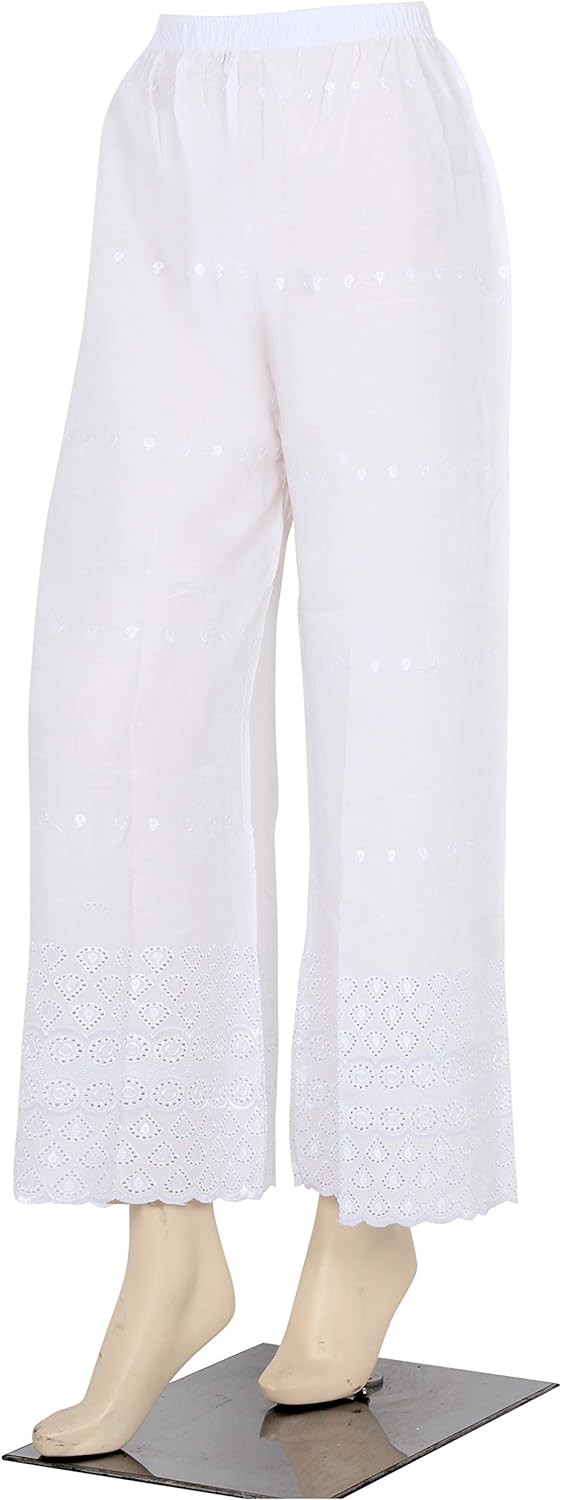 Women Chikankari Embroidered Straight Palazzo Pants | Ladies Trouser Legging Bottom Salwar | Suits on Kurta, Kurtis, Blouse and Tops