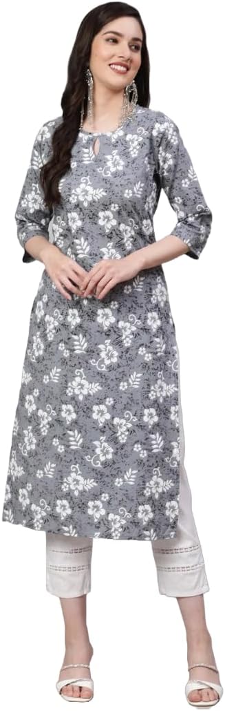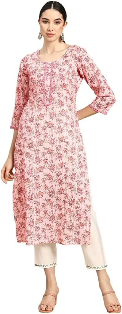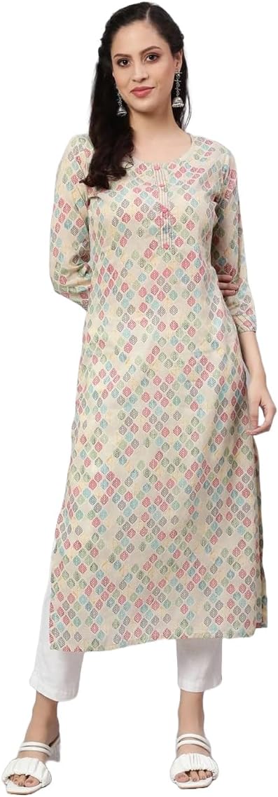 Women Straight Printed Kurta | Ladies Kurti Kameez Top Ethnic Ready to Wear | Suits for Casual Formal Traditional Wear