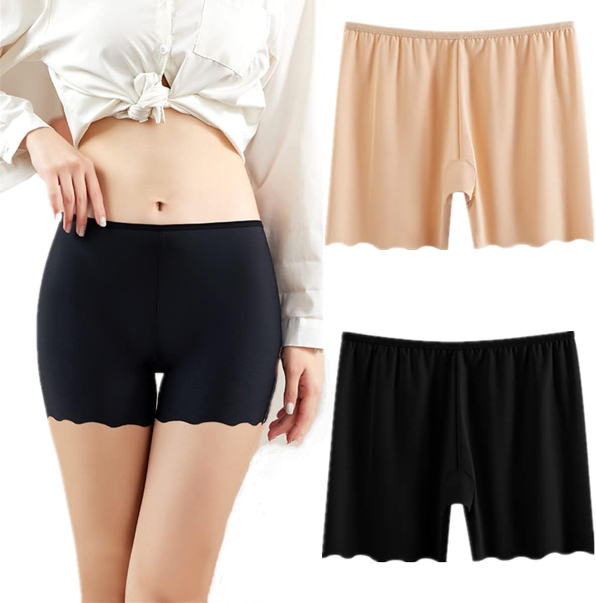 2 Pcs Women's Ice Silk Boyshorts Stretch Underwear Seamless Boxer Brief Panties Soft Invisible Night Shorts/Under Skirt Safety Shorts - multi - One Size