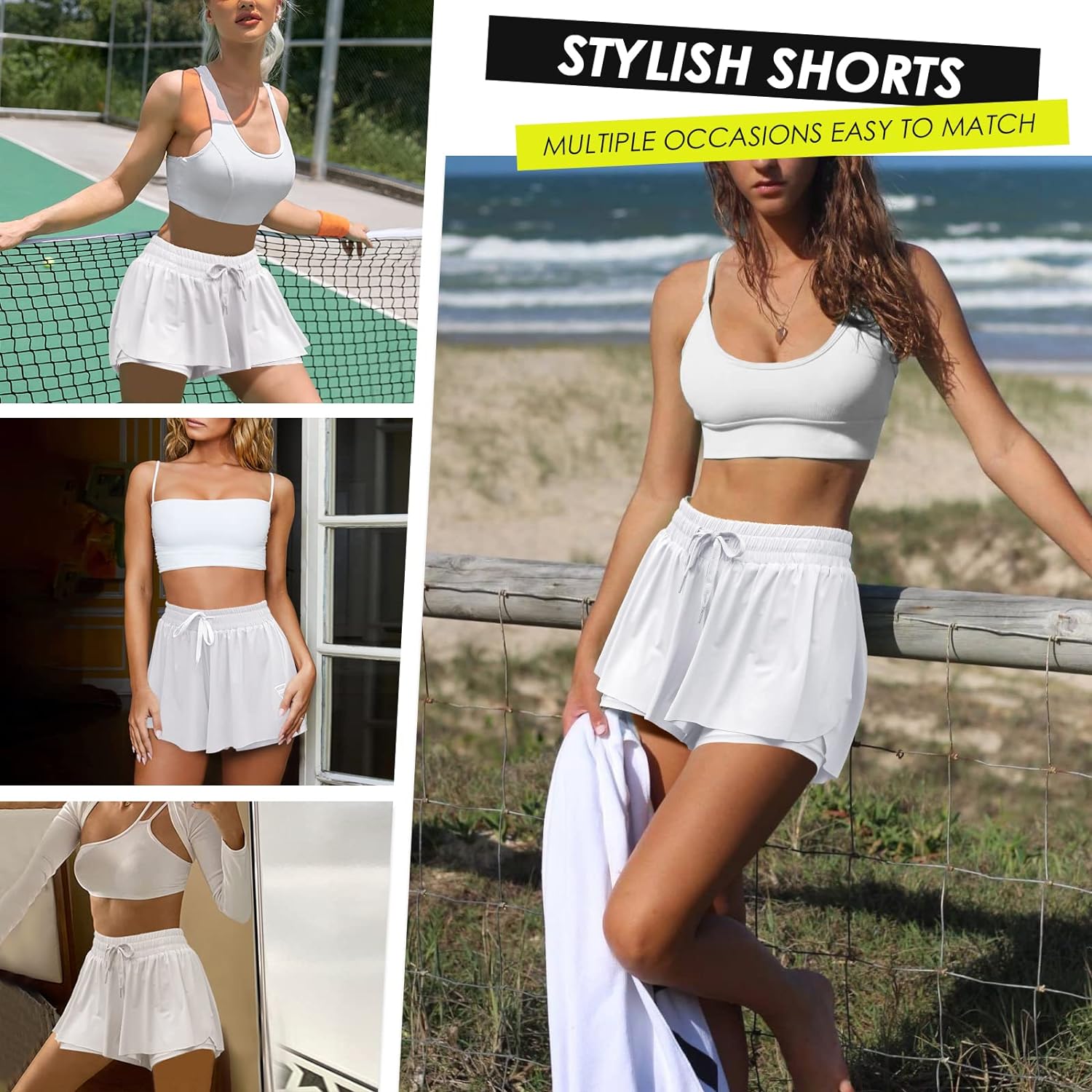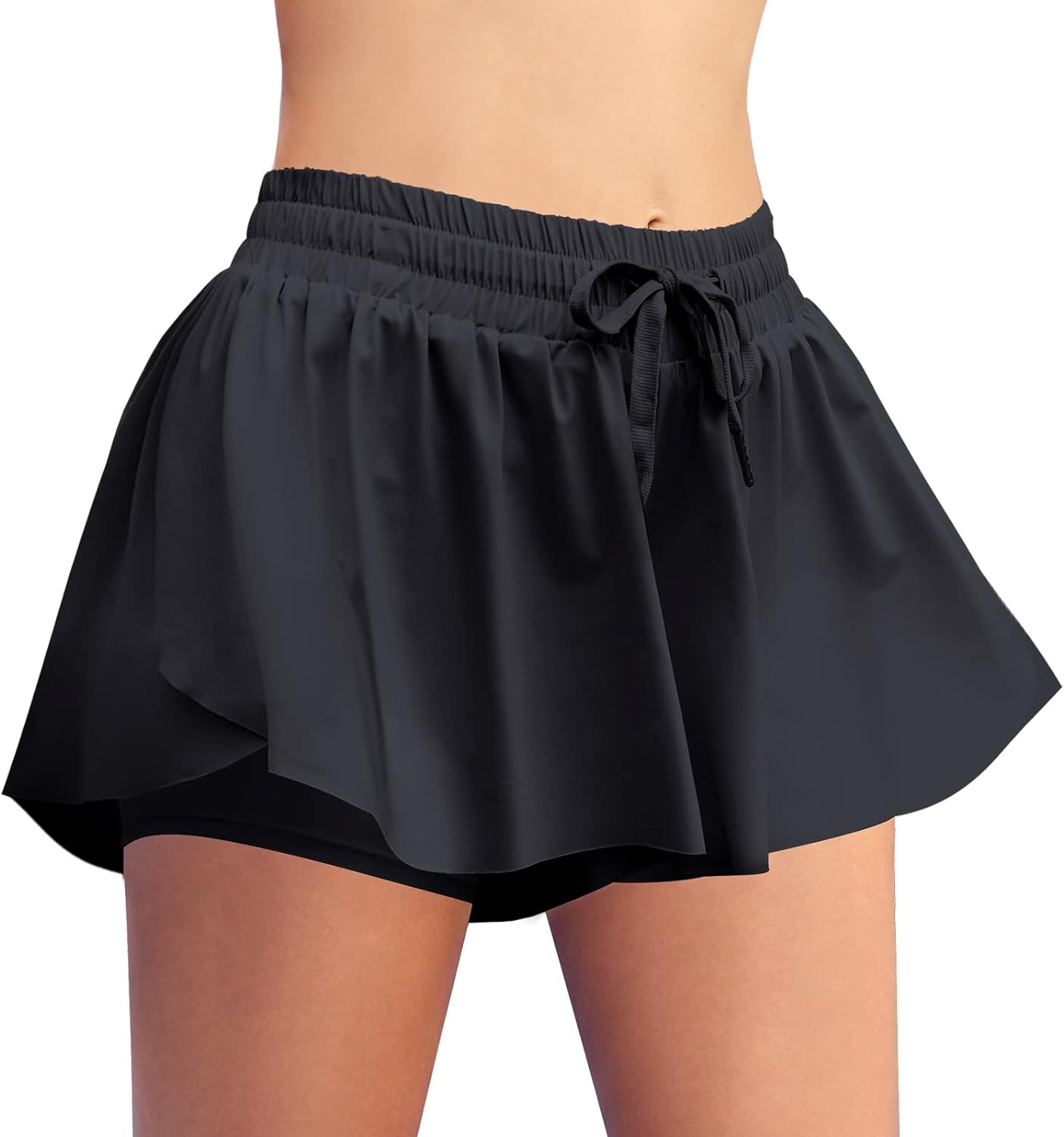 • 🎄2 in 1 Flowy Running Shorts for Women🌟 Our flowy shorts for women athletic is to be composed of flowy skirts outer and built-in bike shorts liner, offering a wider range of motion without awkwardness during exercising. This women’s athletic running shorts with pocket is made of non-see-through, soft, silky fabric. With buttery soft naked feeling inner shorts, these butterfly athletic shorts provide extra coverage and support and enhance your range of motion.