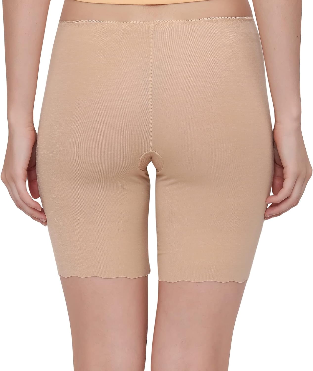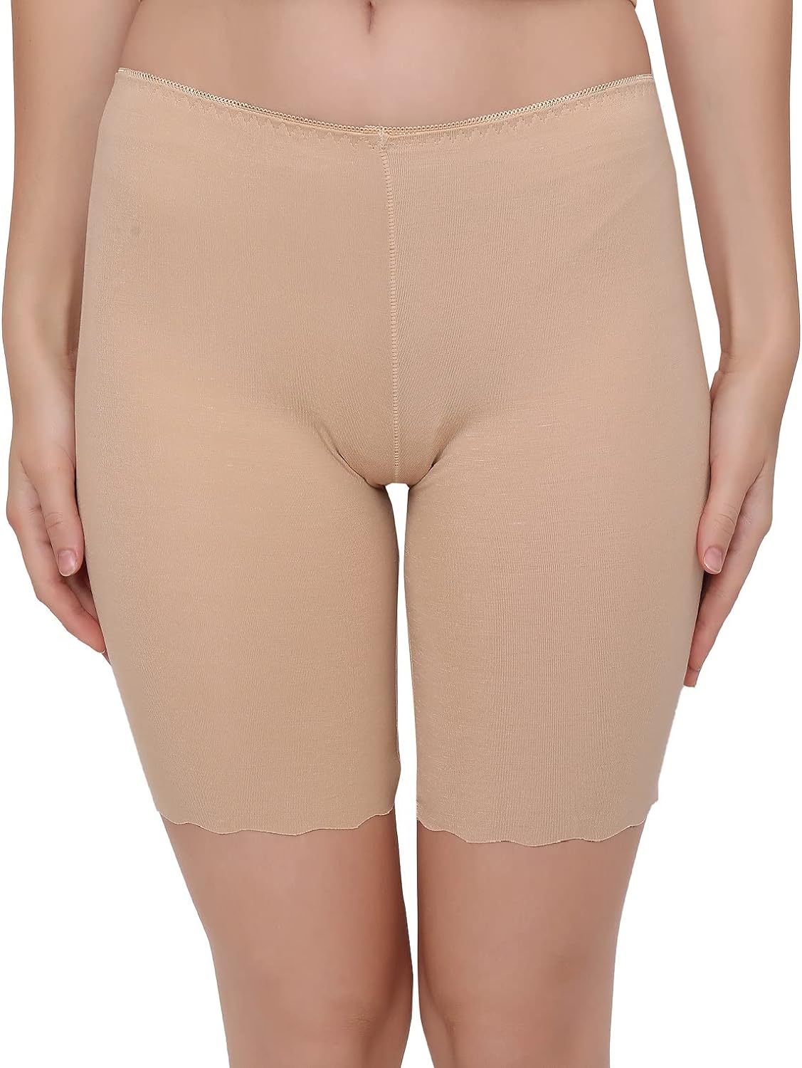 Smooth and comfortable safety short made of cotton spandex is thin and lightweight, soft and durable, but they can't be seen through at all and gives cool feeling. Seamless and smooth which feels just like your skin.No pressure, no restraint, no panty lines, no trace hems and no rolling up or slipping down.Women's seamless smooth slip short panty are essential slip shorts in every woman?s wardrobe.They are ideal for layering under clothes to protect you from embarrassment and friction.