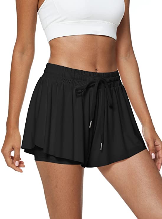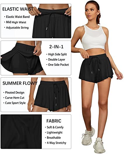 NC Womens 2 in 1 Flowy Workout Shorts Casual Drawstring High Waist Running Athletic Shorts Comfy Summer Skirt for Women Gym Yoga Athletic Running Hiking Spandex Comfy Lounge Sweat Skirt