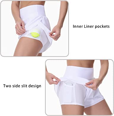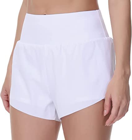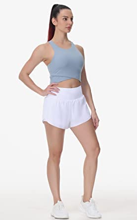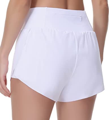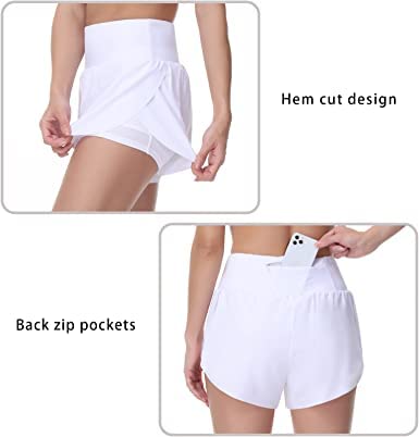 Women’s Quick Dry Running Shorts Mesh Liner High Waisted Tennis Workout Shorts Zipper Pockets