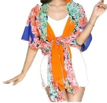 Capelet can be worn with jeans, leggings, skirts or harem pants, sleeveless dress & bikini. Orange Floral. CP-A33.