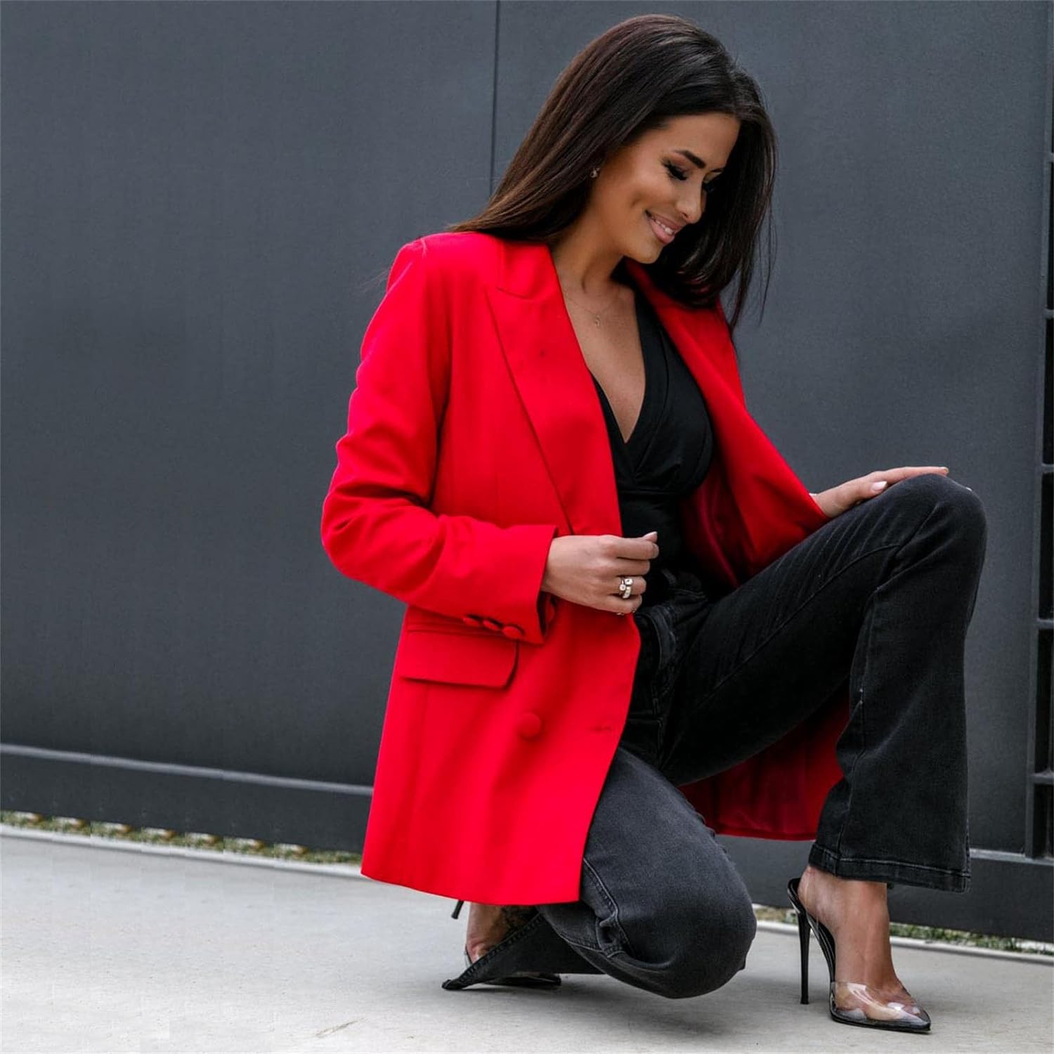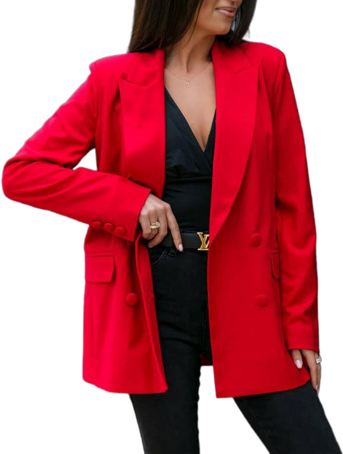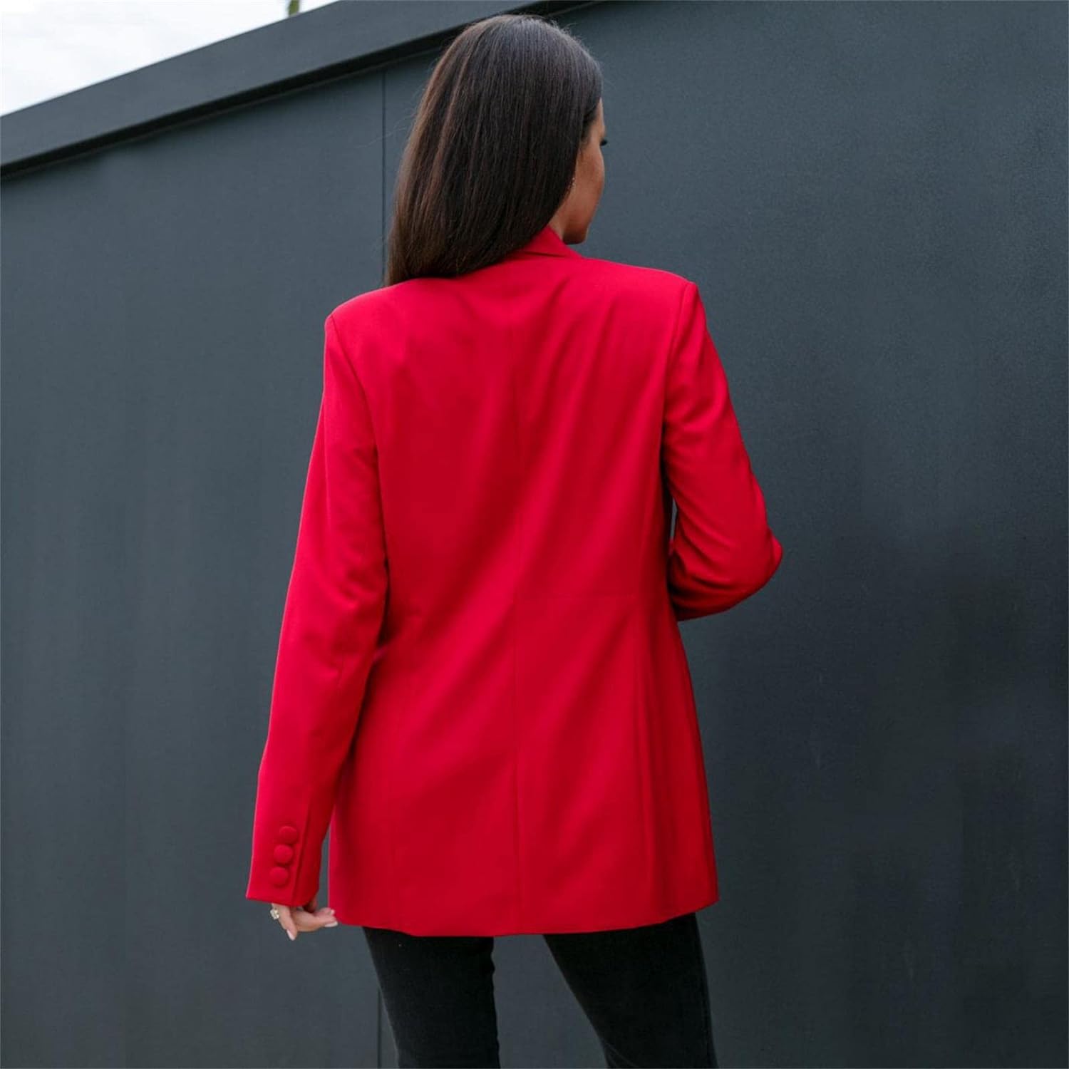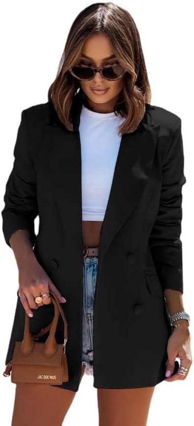 - Style characteristics: women's fashion Blazer, women's casual Blazer, women's business Blazer, solid color loose Blazer, flip pockets on both sides, button closure, women's black Blazer, classic lapel coat, office suit coat