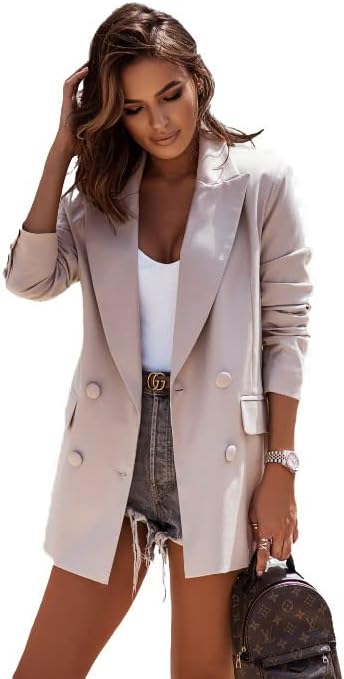 Women's Casual Business Blazer Fashion Casual Solid Color Office Coat Classic Lapel Button Open Placket Coat