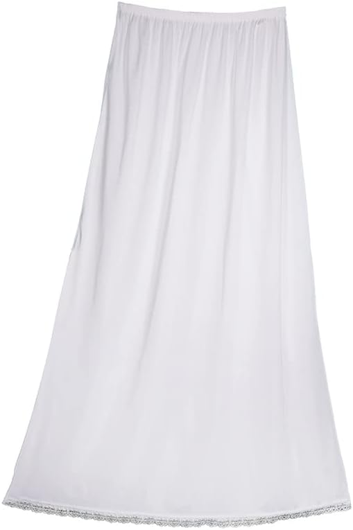 Full Length Soft inner Skirt Silk 100% with Elasticised Waistband Small Lace Women white , Skirt Size ( M-L-XL-XXL)