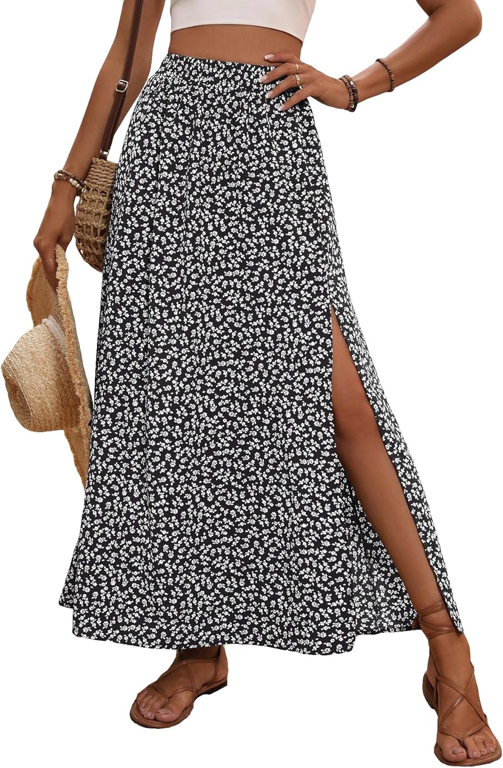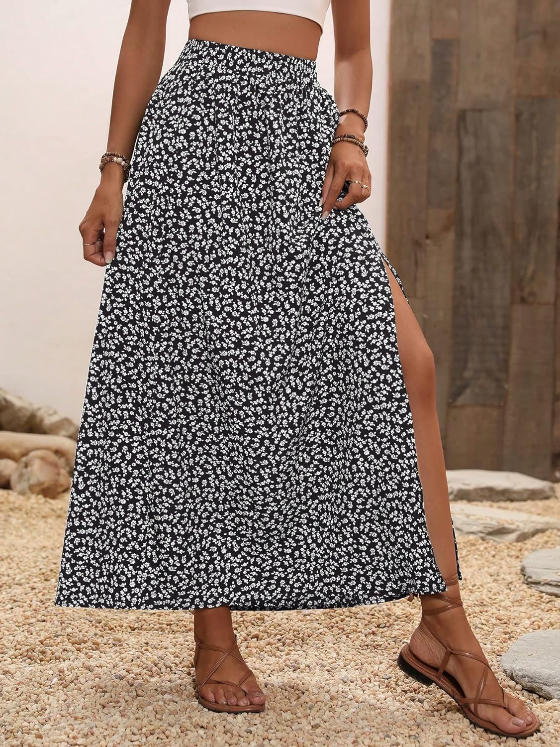 - Features: floral print, split thigh, high waist, a line, boho, maxi skirt