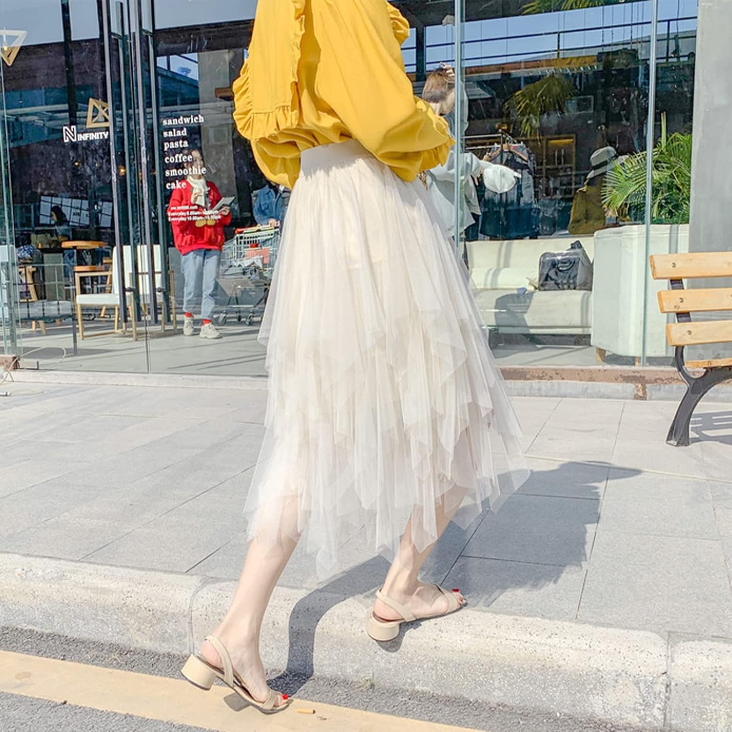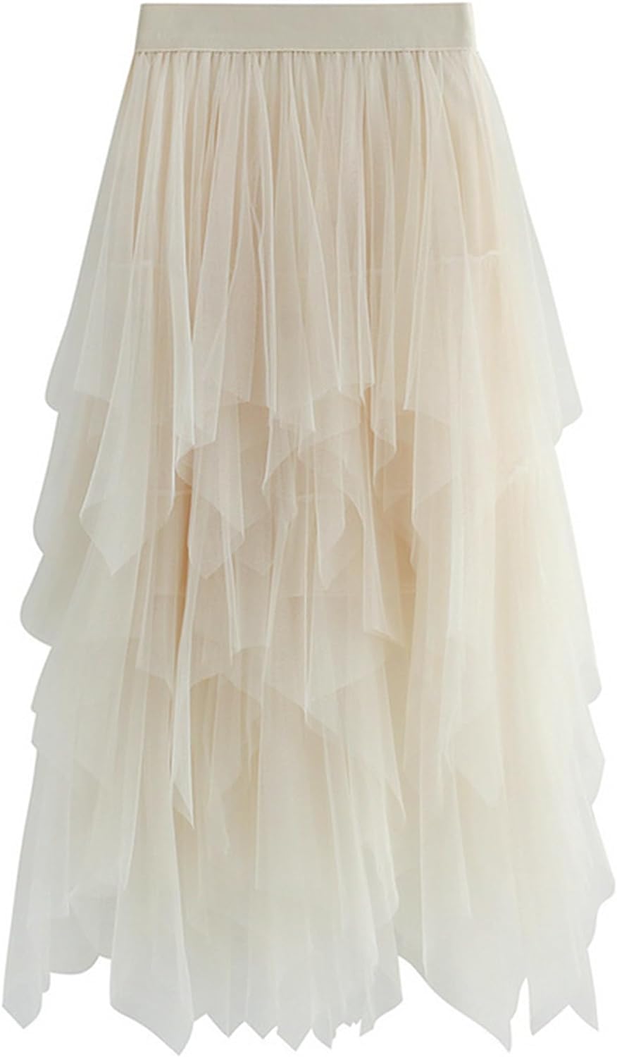 - Design: High waisted design,elastic closure,irregular ruffles hemline, midi skirt, tutu skirt, flare A line style,elegant and fashionable skirt.