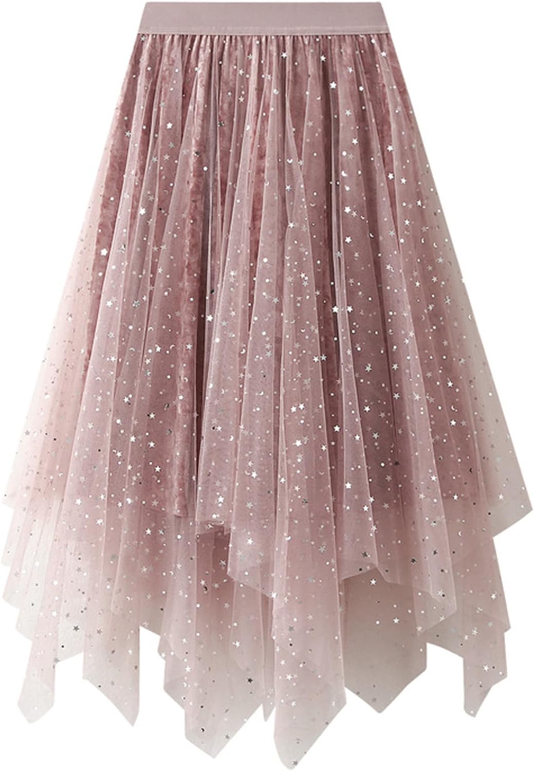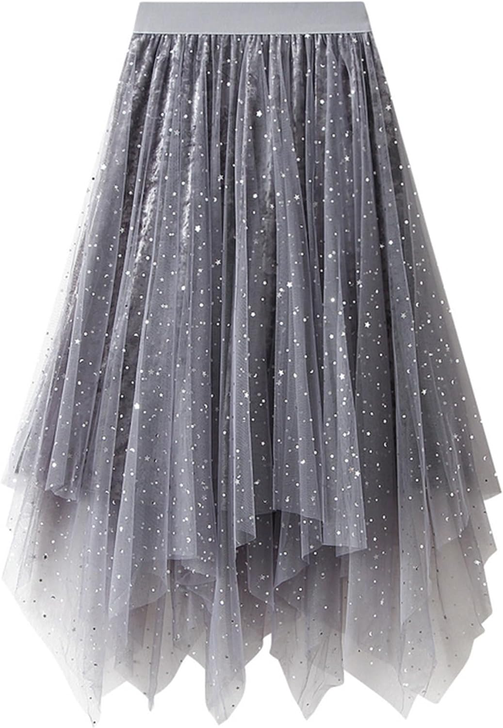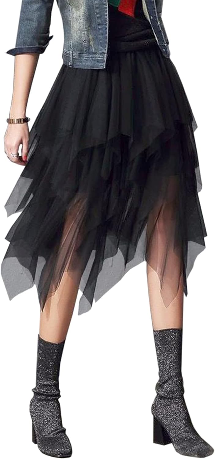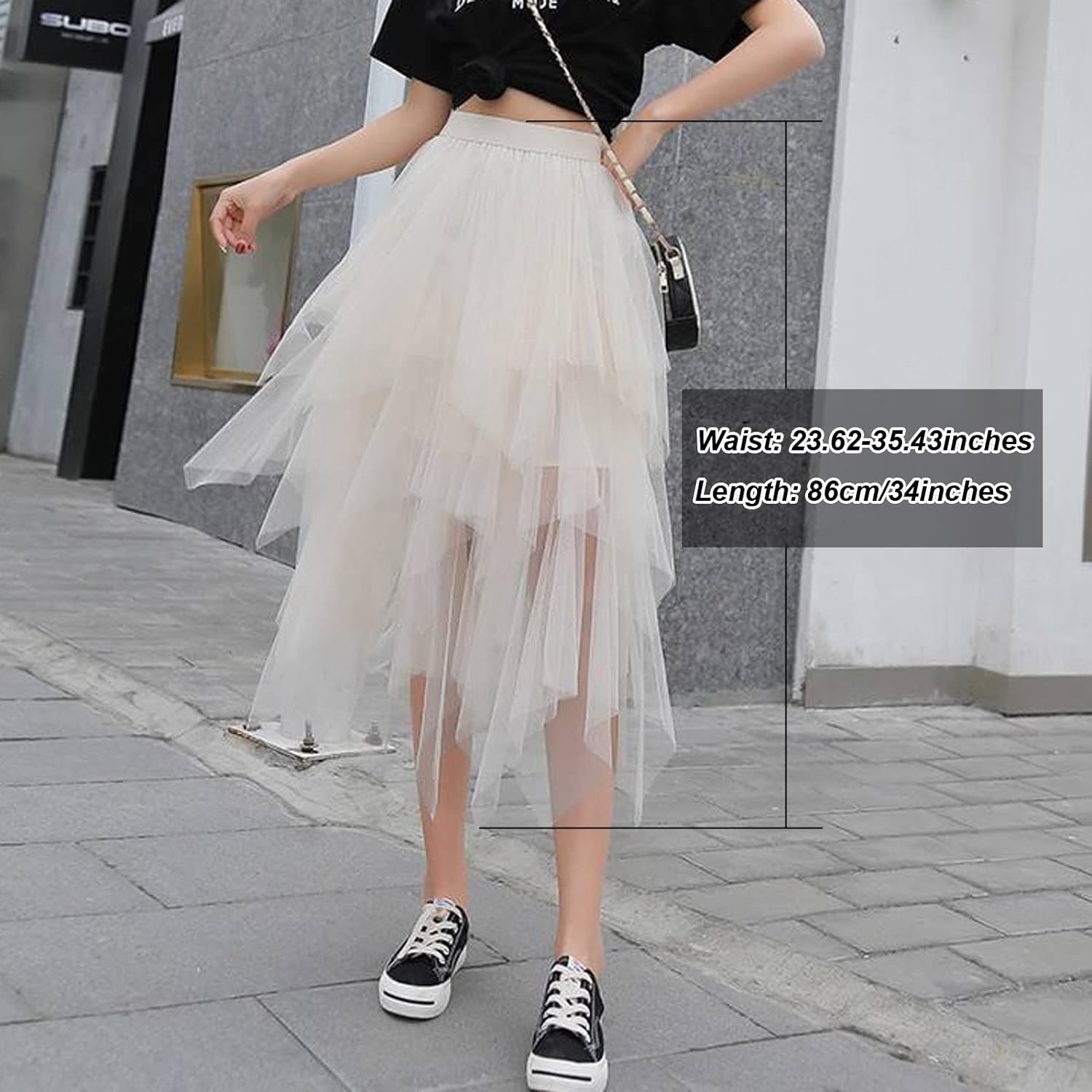 Tulle Skirts for Women 3 Layered High Low Asymmetrical Midi Length Elastic Waist Mesh Tutu Skirts